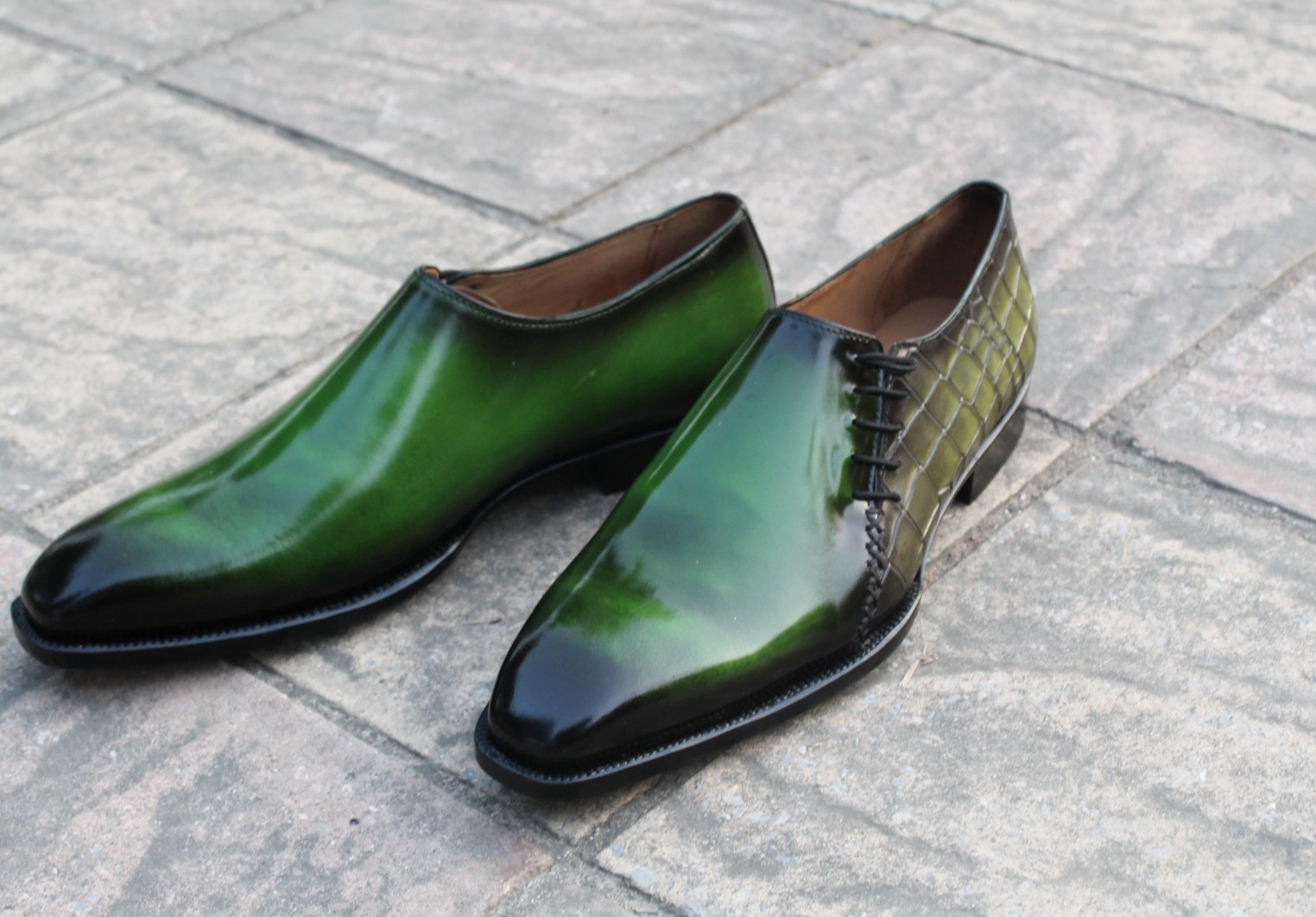 Inner: Soft Leather Sole: Leather Gender : Male Heel: Leather Color: Green Patina Style: Oxford Shoes Lining Soft Calf Leather Lining Totally Hand stitched Manufacturing time 7-10 business days If you can’t find your Size/Color just send us message we will make for you.