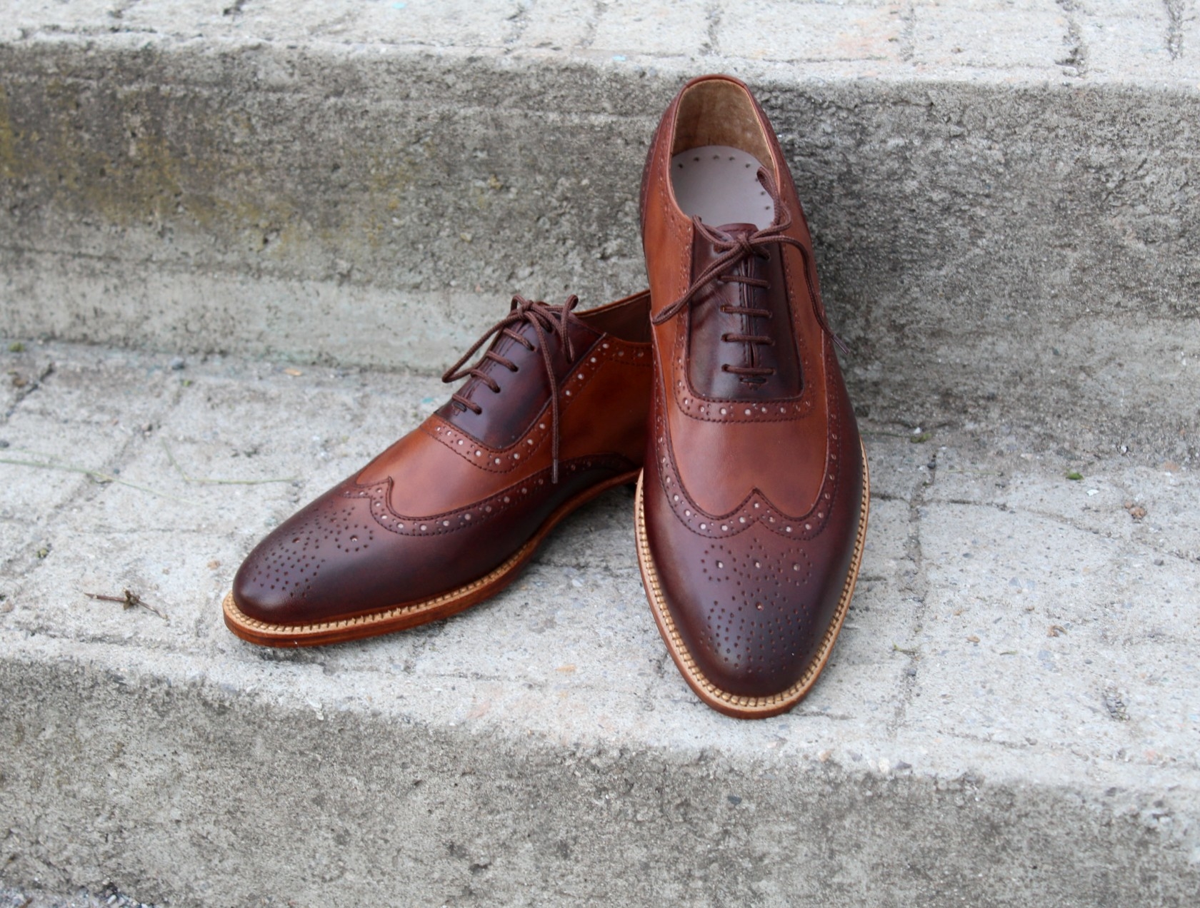Handmade Men Full Brogue Brown Wingtip Dress Oxford Shoes
