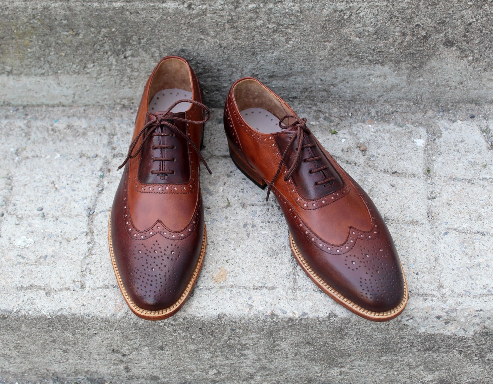 Inner: Soft Leather Sole: Leather Gender : Male Heel: Leather Color: Brown Style: Brogue Wingtip Oxford Shoes Lining Soft Calf Leather Lining Totally Hand stitched Manufacturing time 7-10 business days If you can’t find your Size/Color just send us message we will make for you.