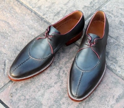 Handmade Mens French Norwegian 2 Eyelet Derby Gray Oxford Dress Lace up Shoes