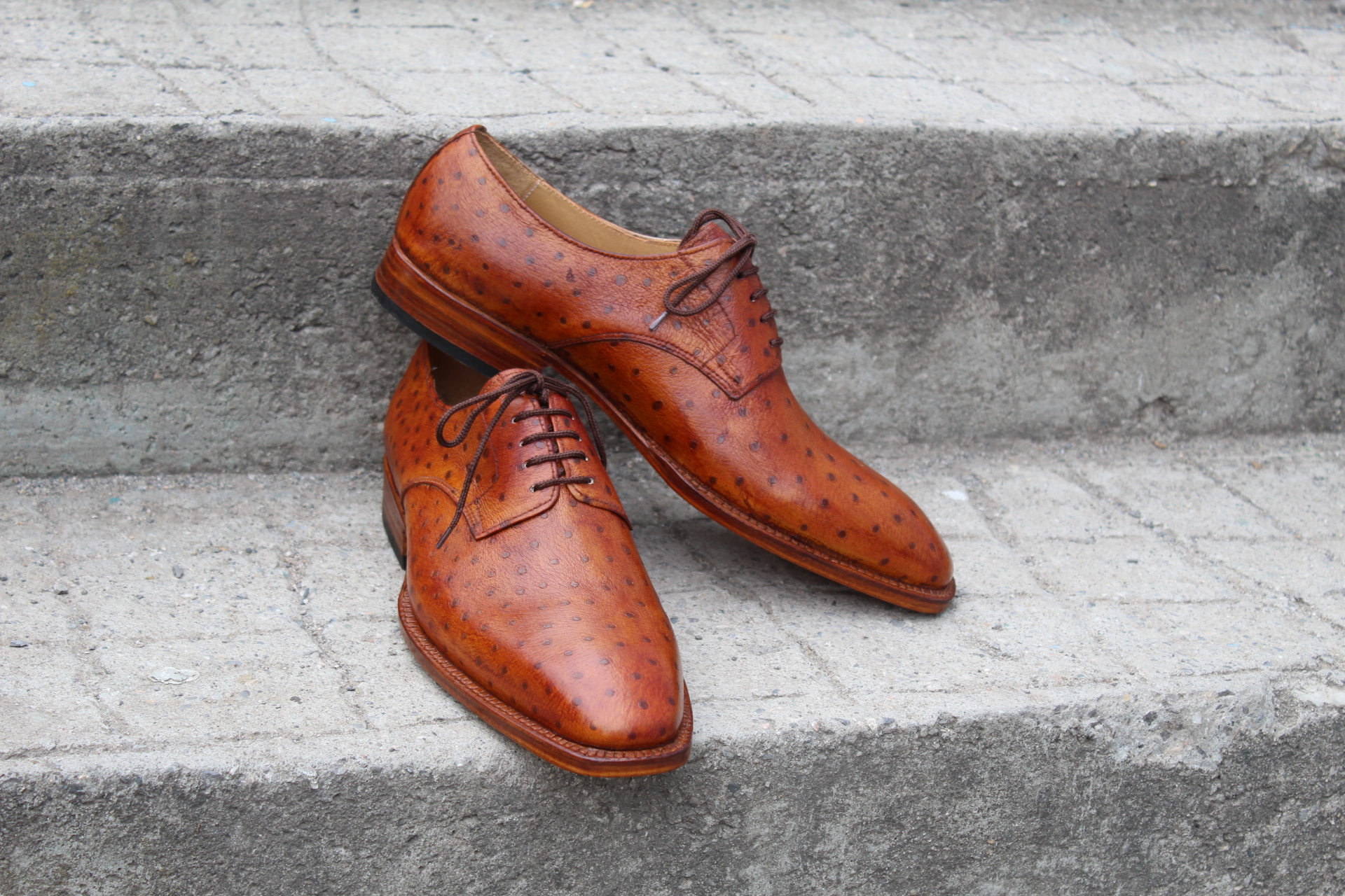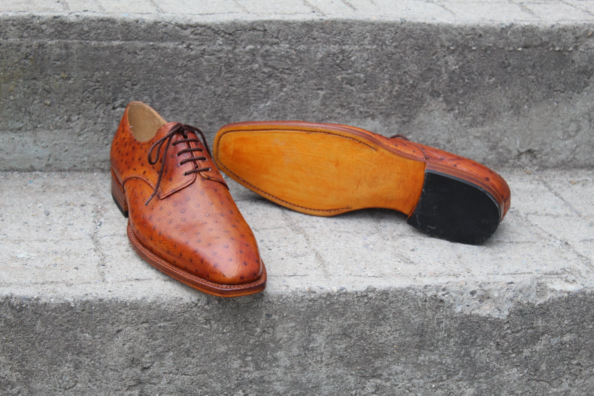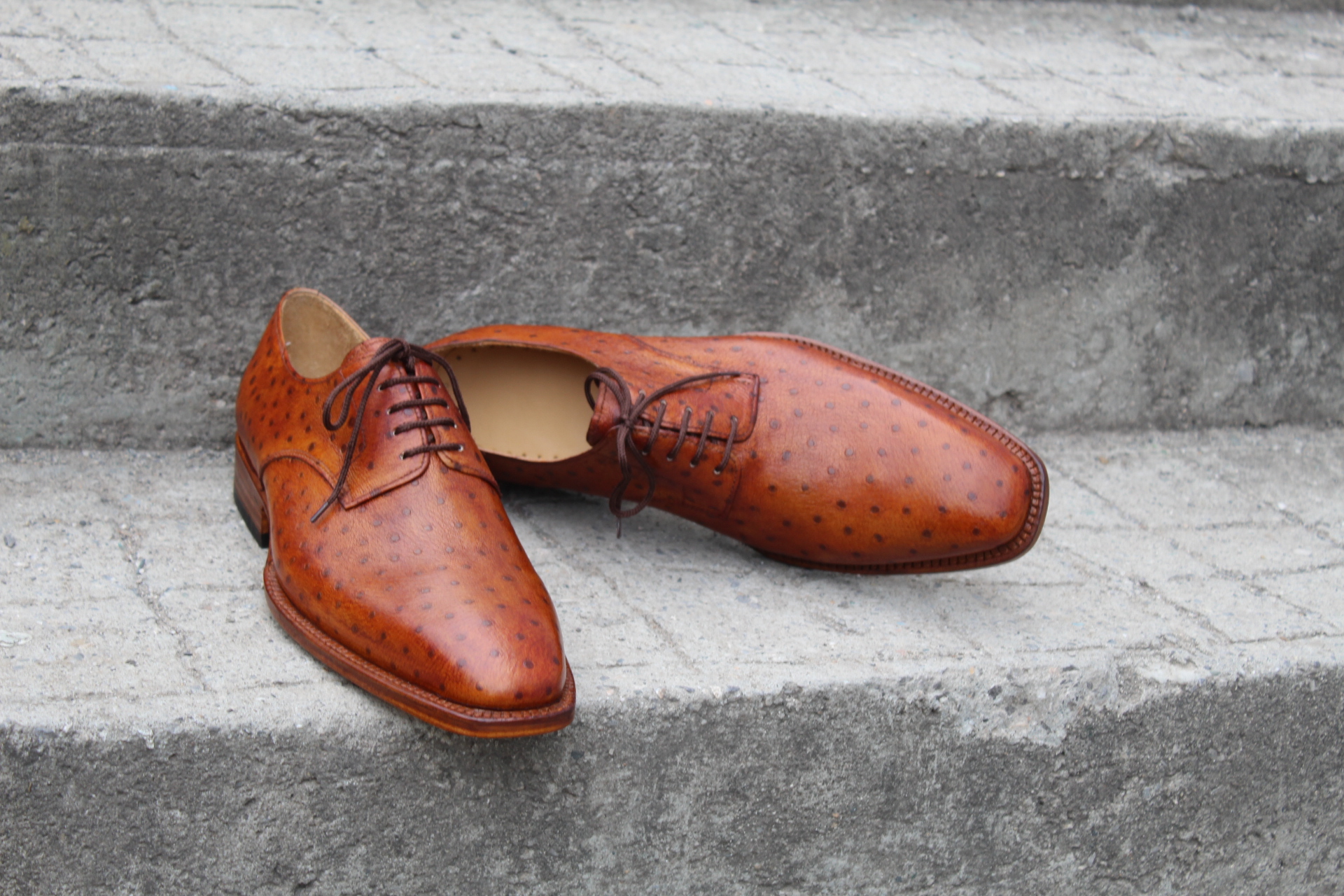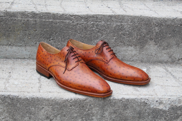 Crafted Leather Classic Brown Ostrich Leather Dress Shoes
