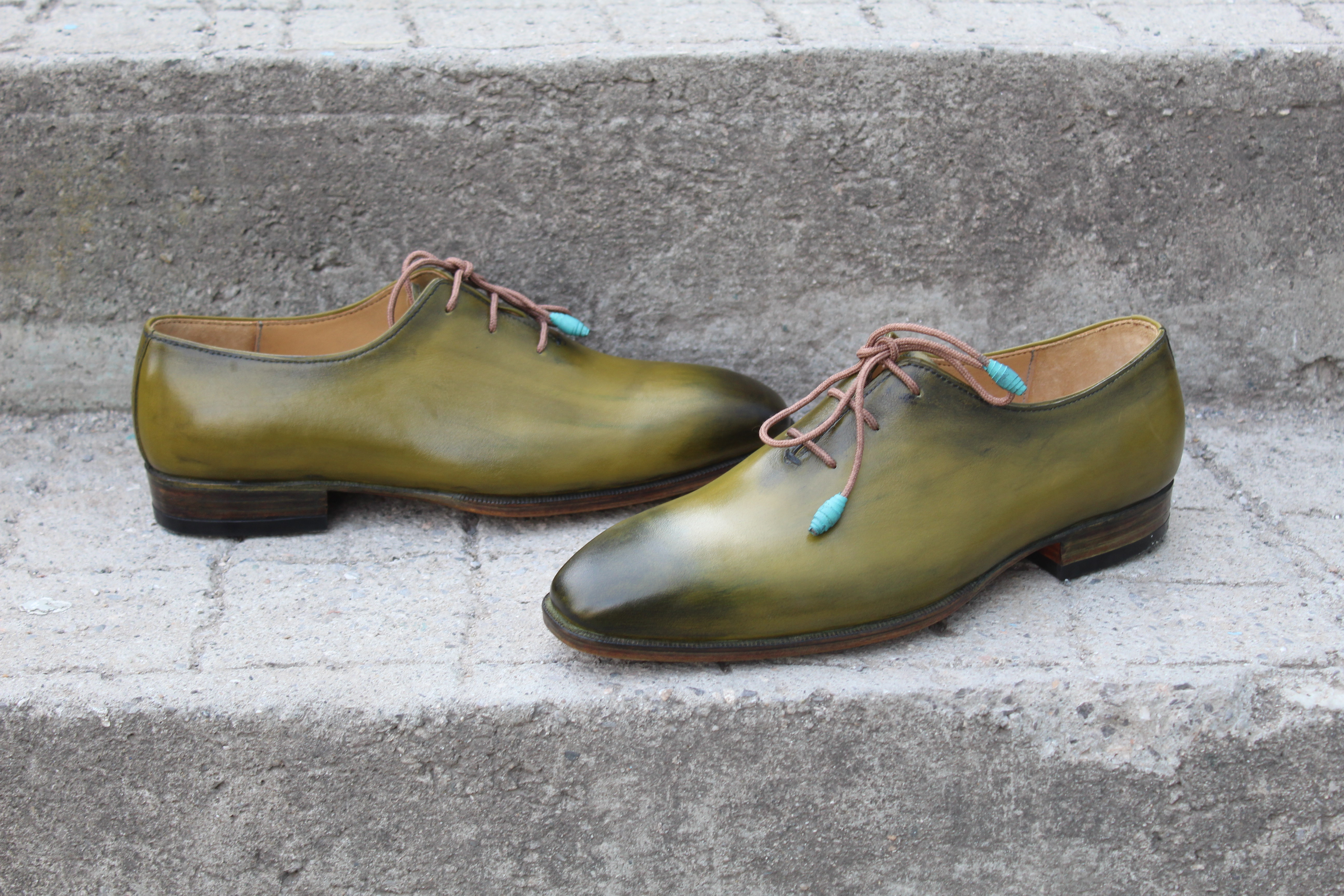 Crafted Leather Handmade Men New Green Patina Oxford Lace up Dress Shoes