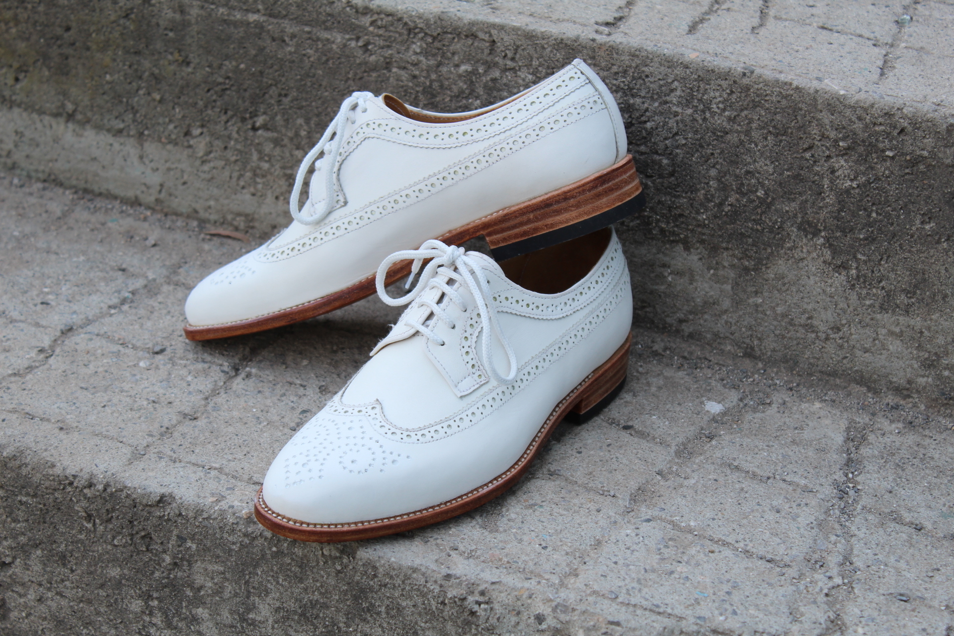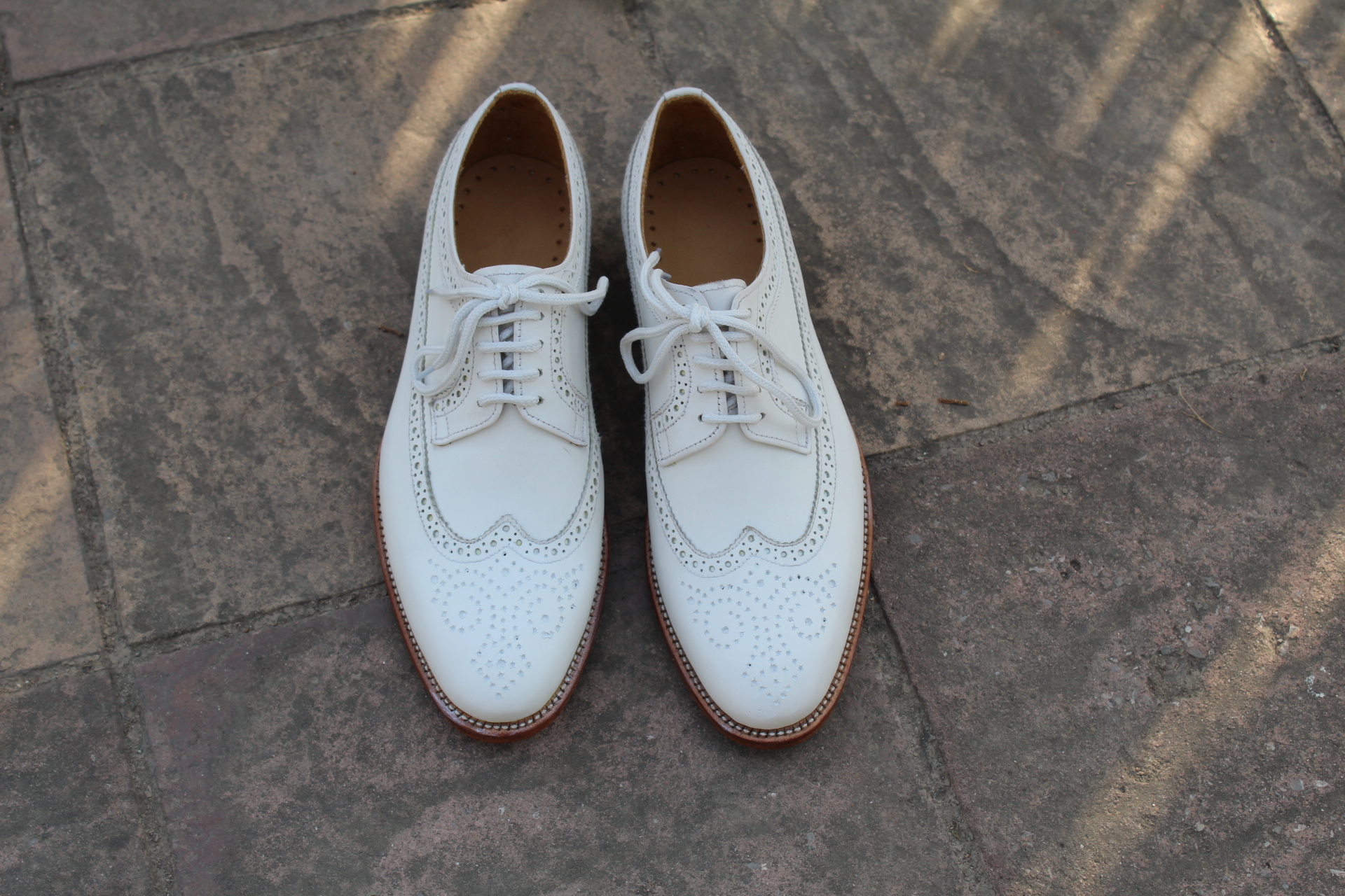 Crafted Leather Handmade Classic White Leather Wingtip Dress Lace up Shoes For Men