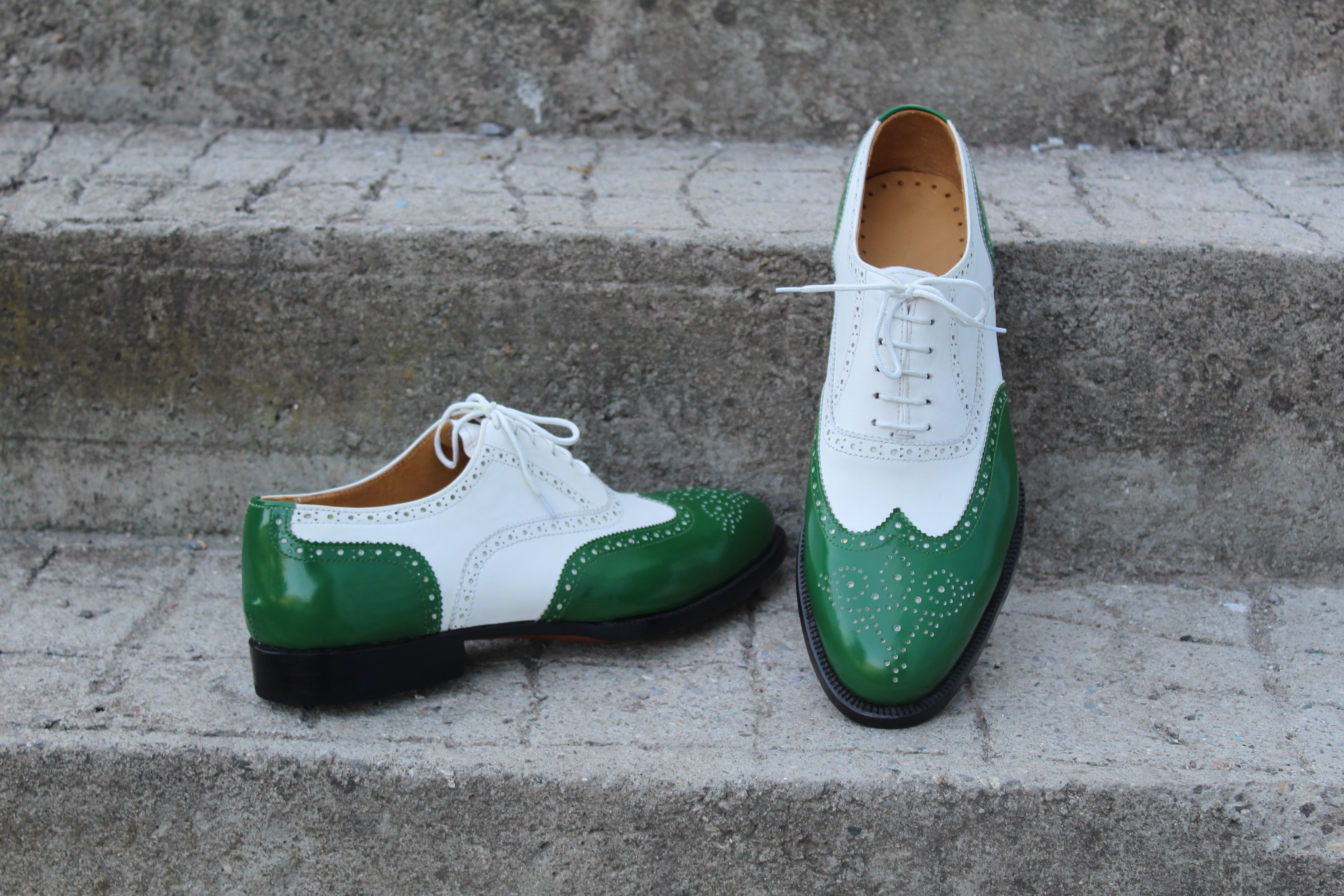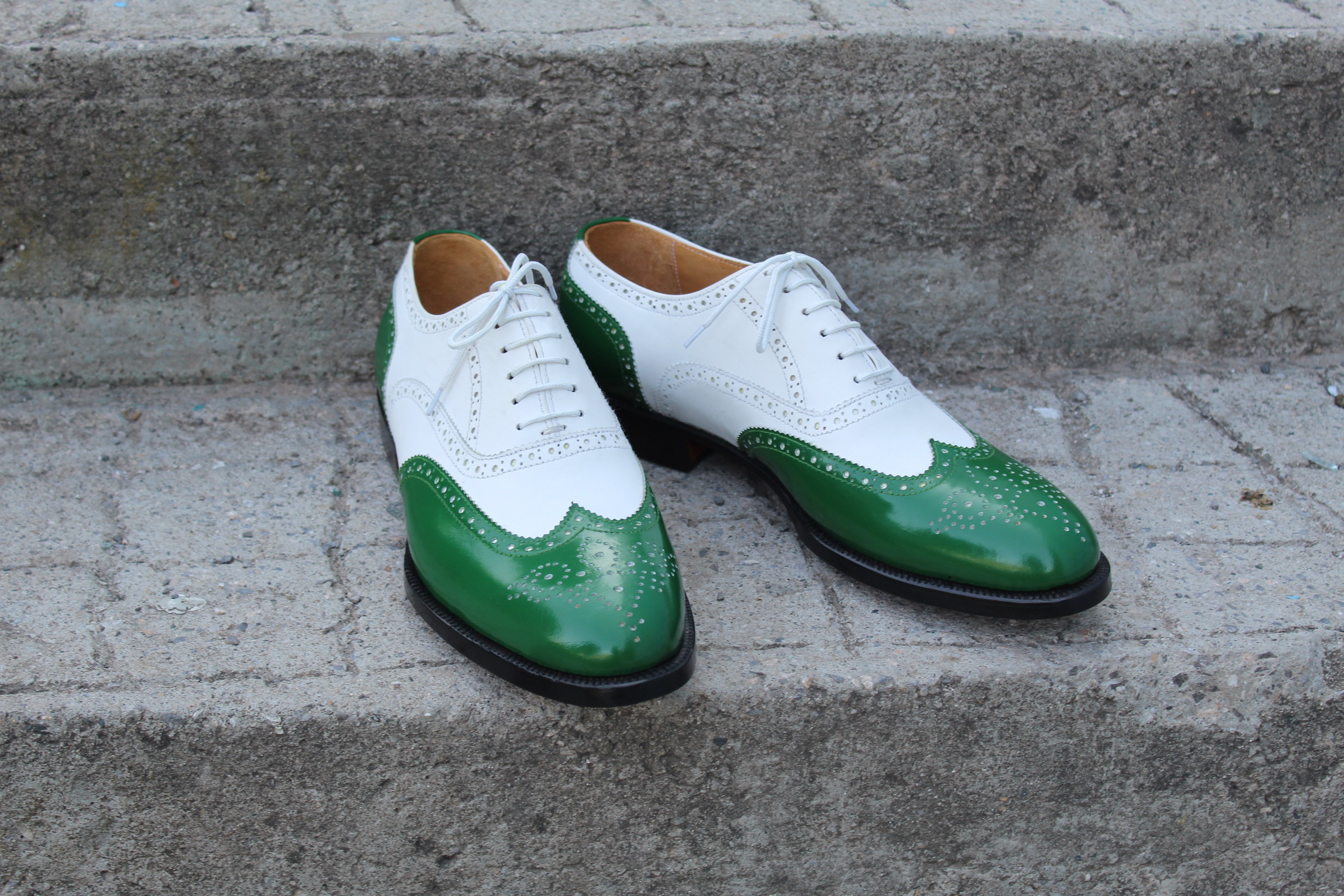 Inner: Soft Leather Sole: Leather Gender : Male Heel: Leather Color: Green / White Style: Dress Shoes Lining Soft Calf Leather Lining Totally Hand stitched Manufacturing time 7-10 business days If you can’t find your Size/Colorjust send us message we will make for you.