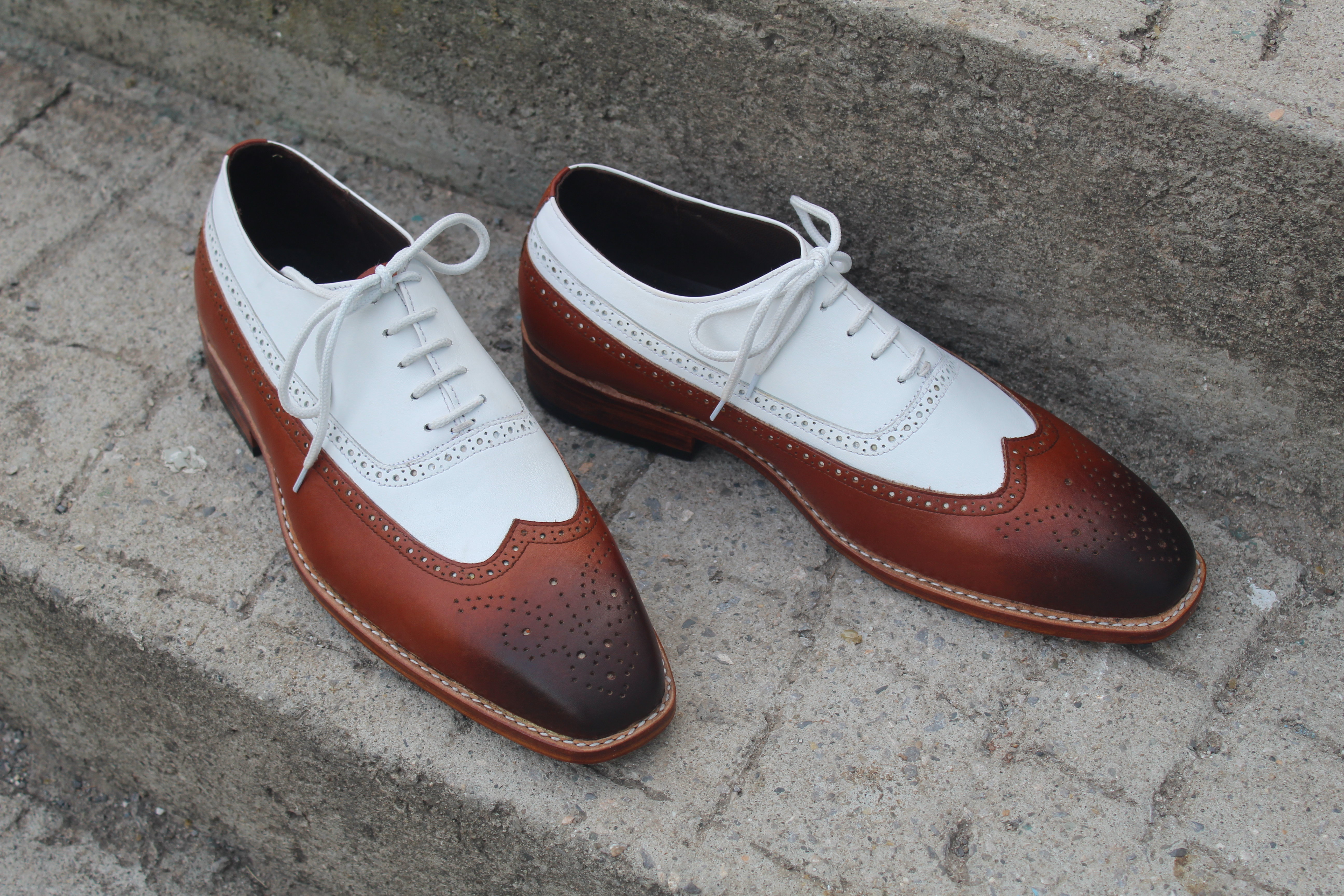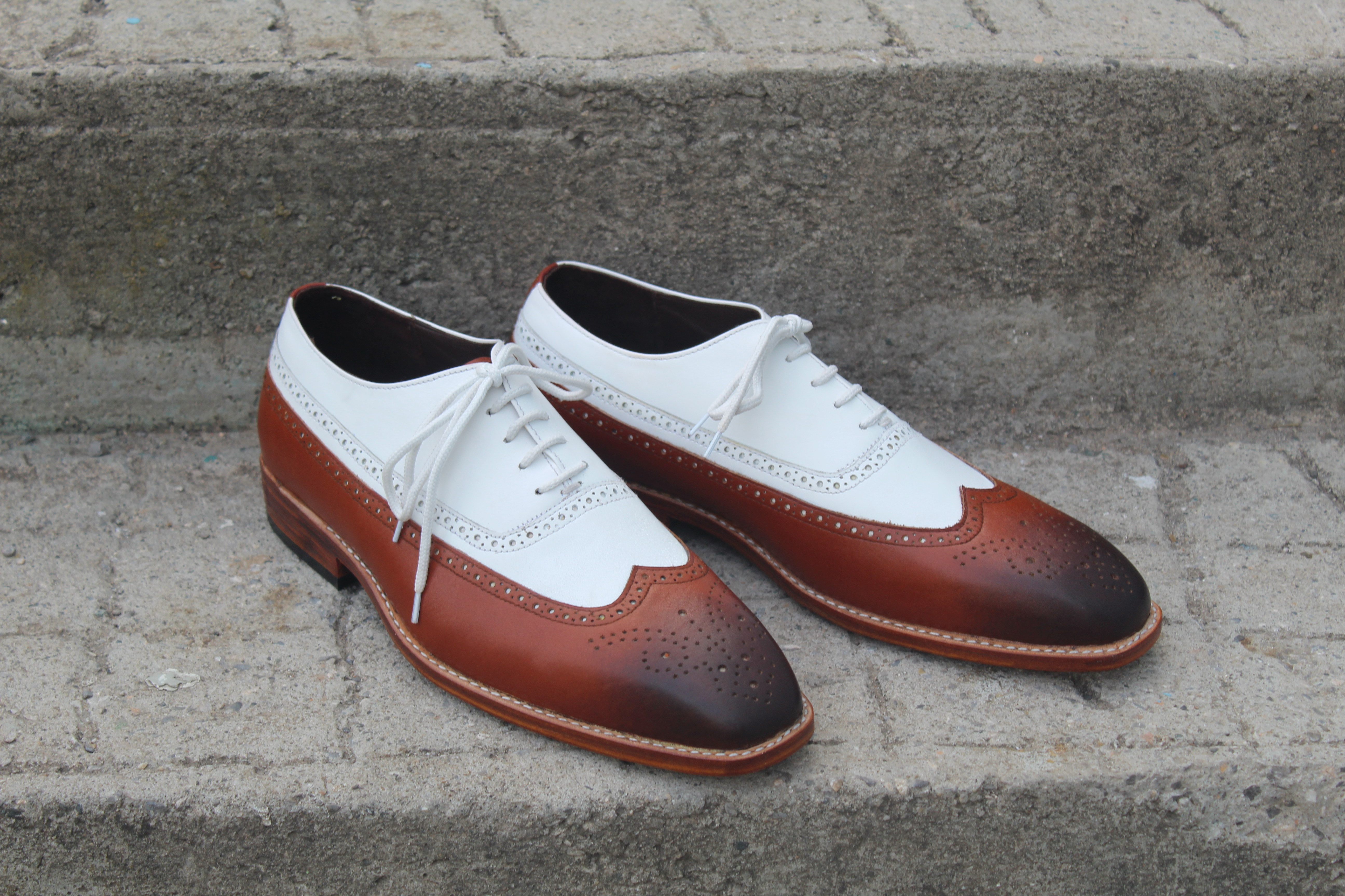Inner: Soft Leather Sole: Leather Gender : Male Heel: Leather Color: Brown / White Style: Dress Shoes Totally Hand stitched Manufacturing time 7-10 business days If you can’t find your Size/Colorjust send us message we will make for you.