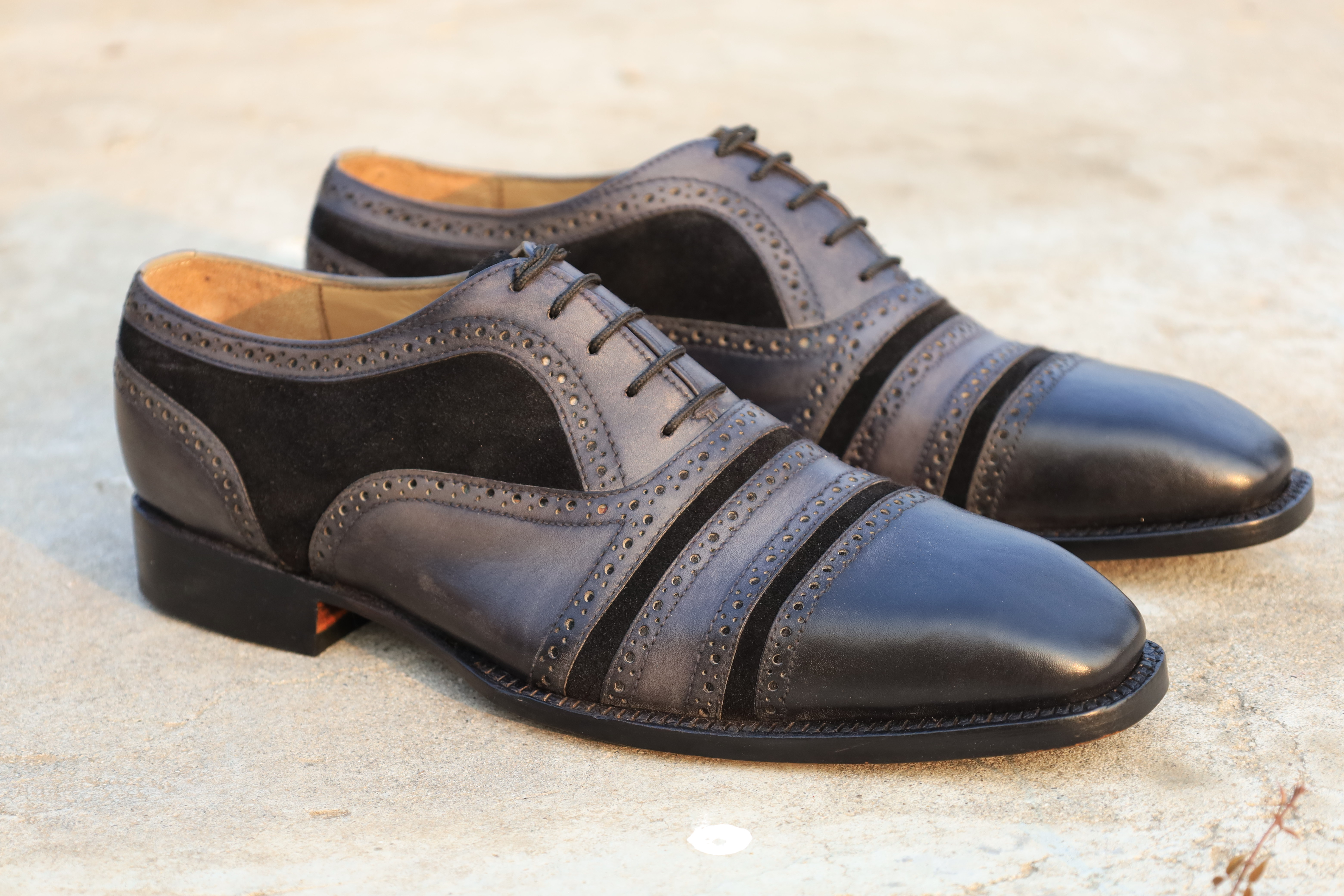 Crafted Leather Classic Gray Blue Suede Leather Oxford Dress Shoes, Men Lace up Shoes