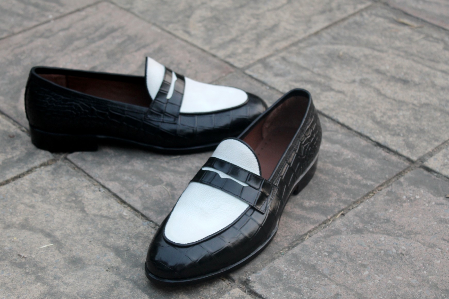 Crafted Leather Classic New Handmade Men Black Crocodile White Leather Loafers Moccasin Dress Formal Shoes