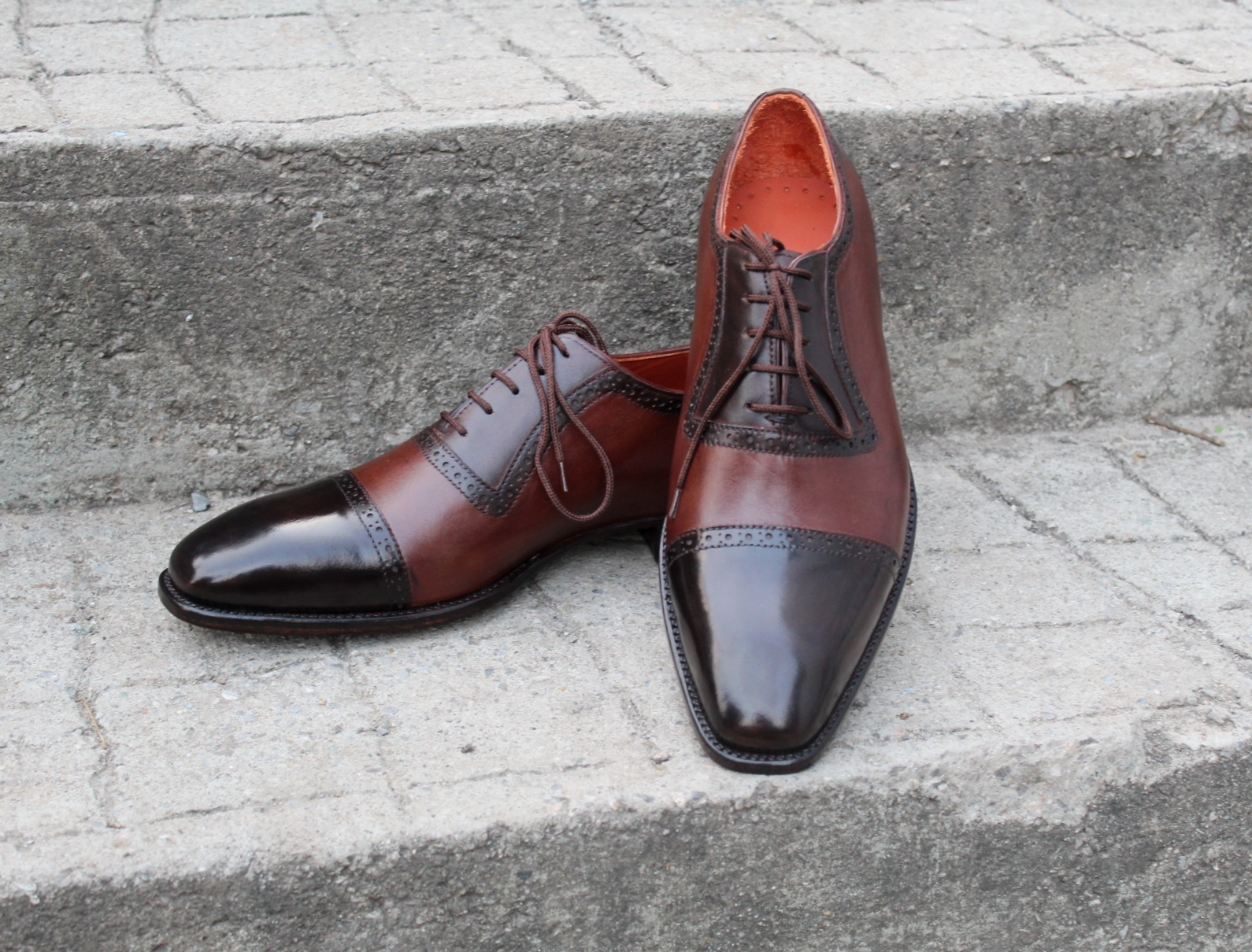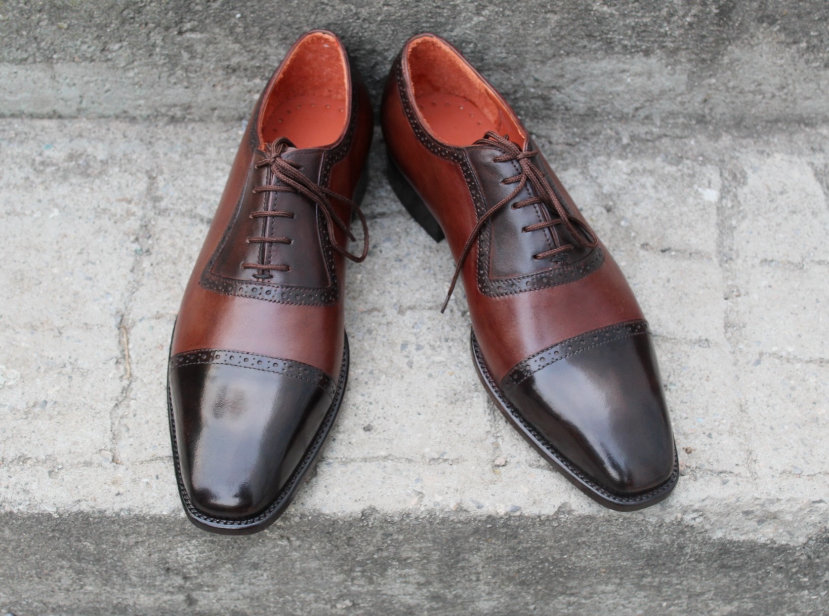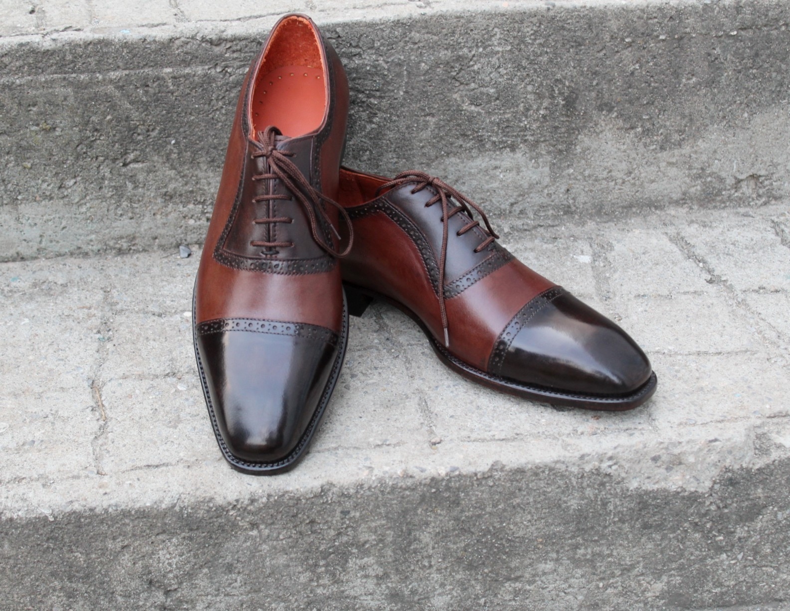 Crafted Leather Classic Chocolate and Brown Leather Handmade Lace up Men Formal Dress Shoes