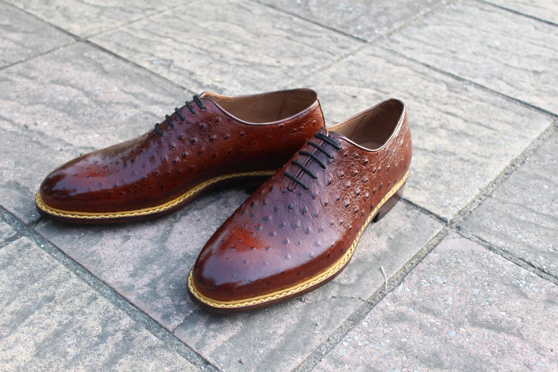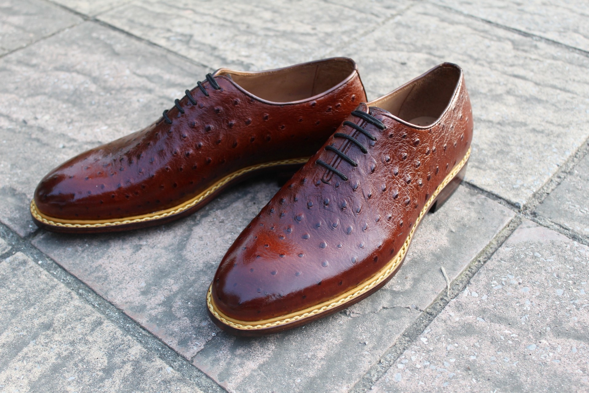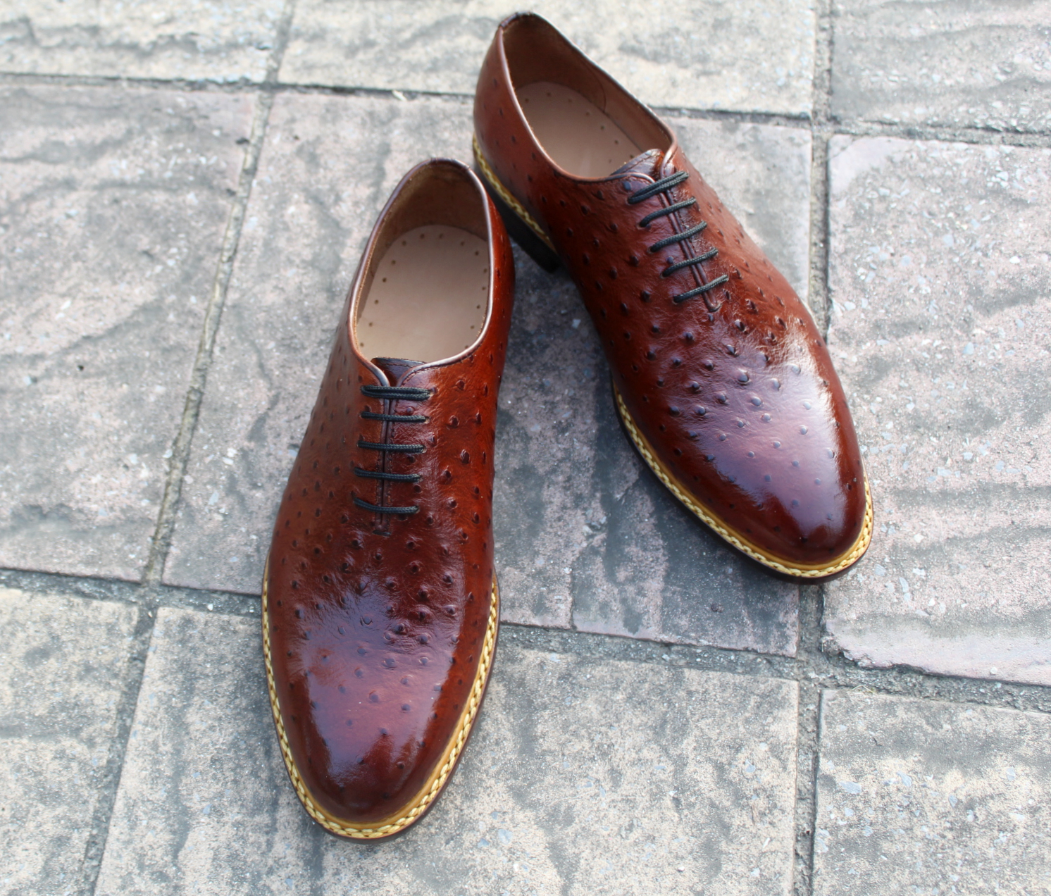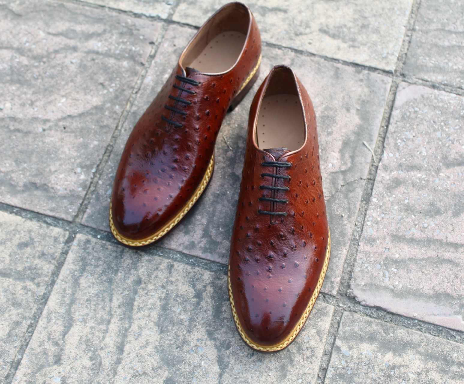 Crafted Leather Classic Men Fashion Dark Brown Genuine Ostrich Leather Lace up Dress Shoes