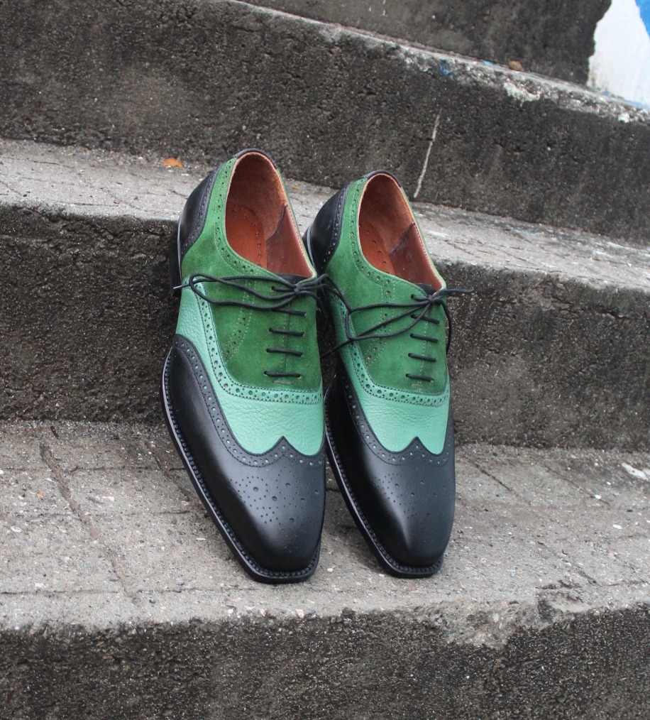 Crafted Leather Green Suede Black Leather Formal Lace up Dress Shoes