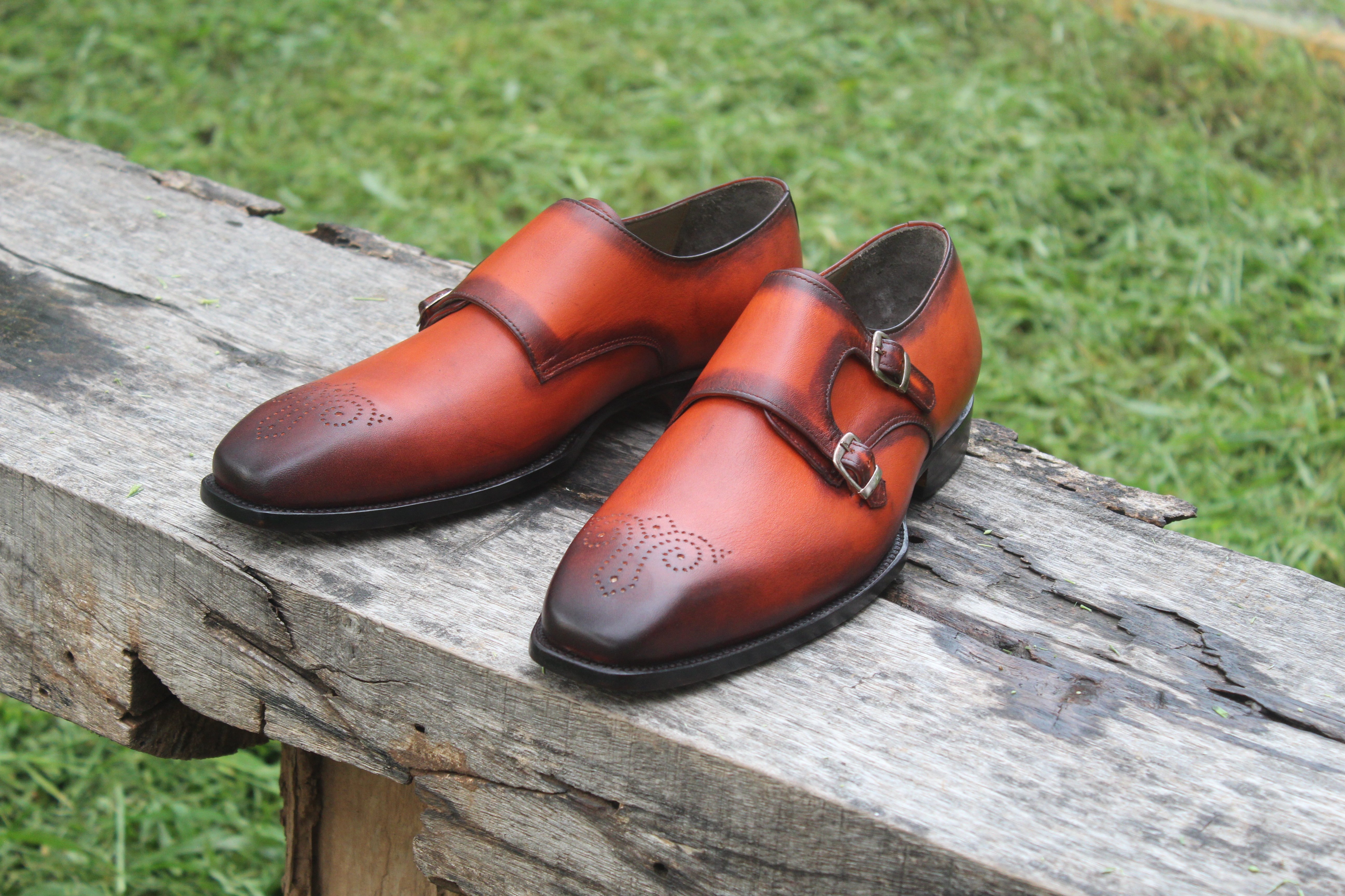 Inner: Soft Leather Sole: Leather Gender : Male Heel: Leather Color: Tan Style: Monk Shoes Lining Soft Calf Leather Lining Totally Hand stitched Manufacturing time 7-10 business days If you can’t find your Size/Colorjust send us message we will make for you.
