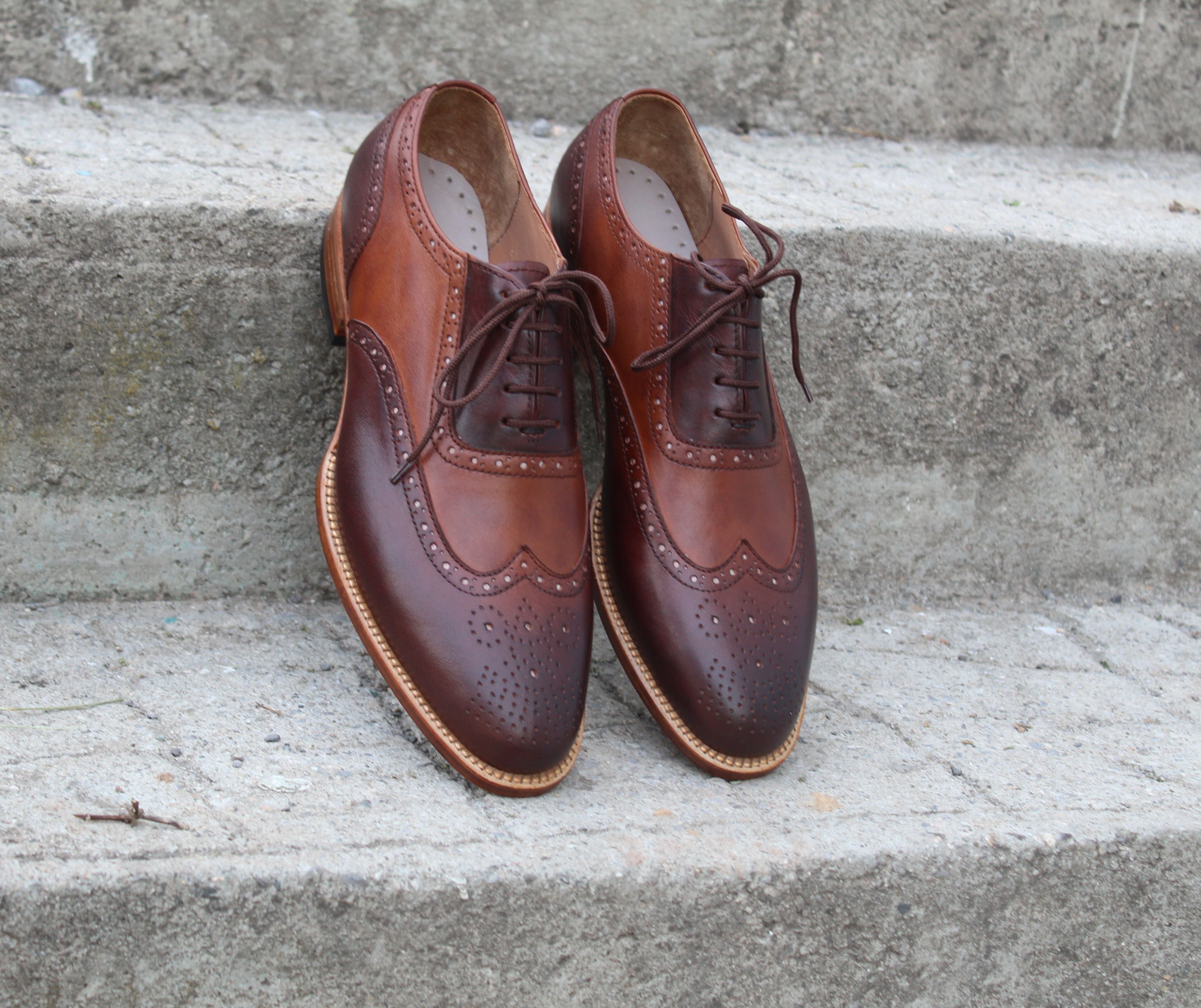 Crafted Leather Elegant and Classic Brown Patina Wingtip Oxford Dress Shoes