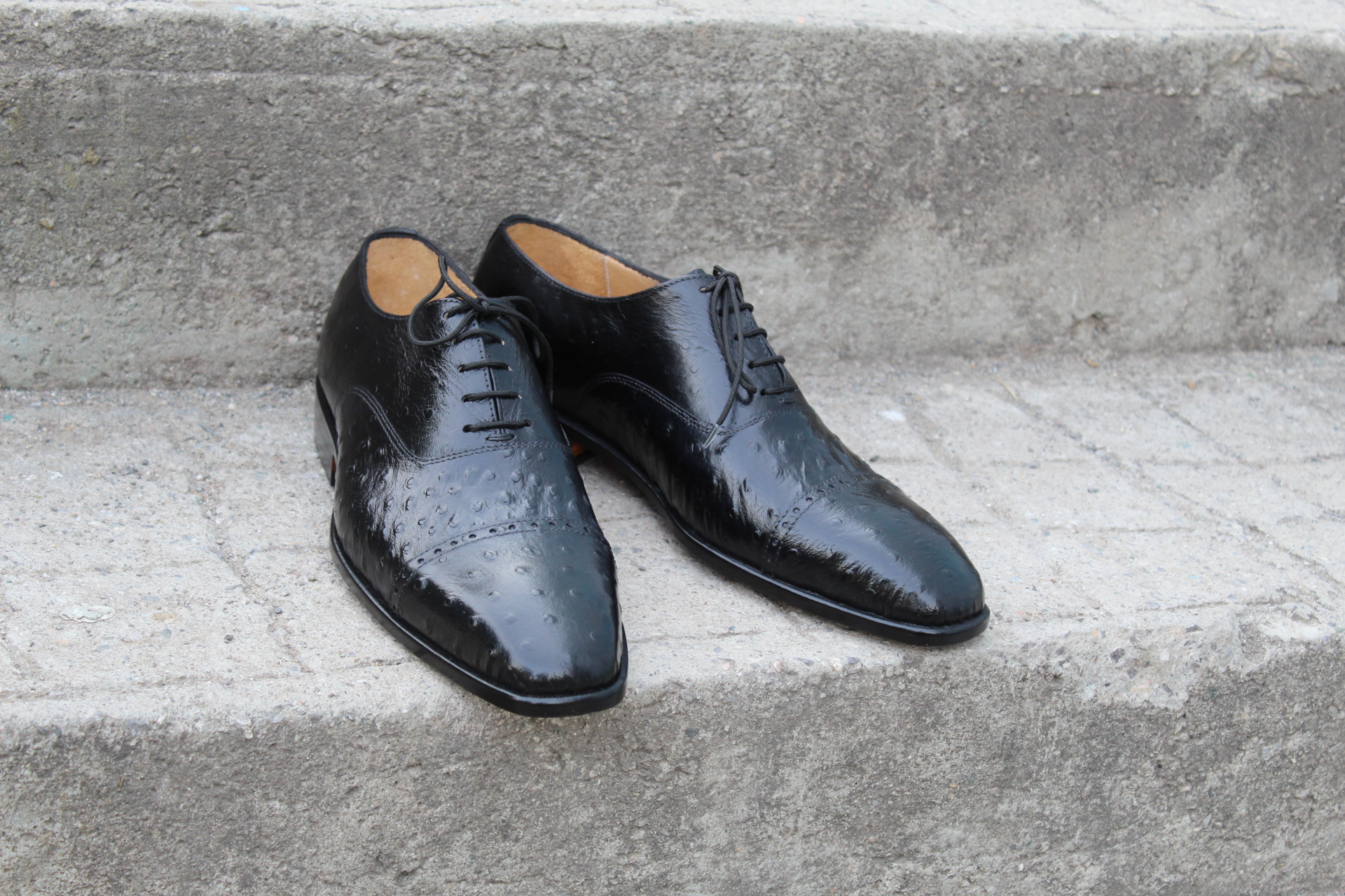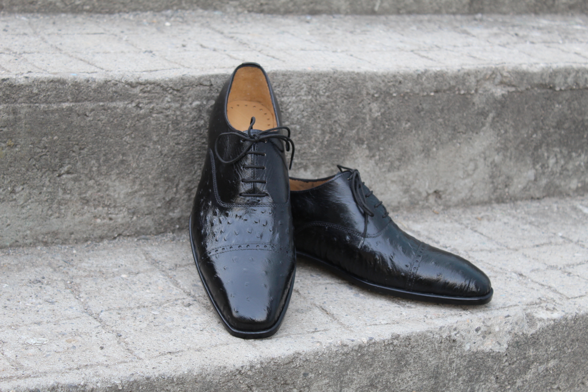 Crafted Leather Black Ostrich Leather Oxford Lace up Dress Shoes