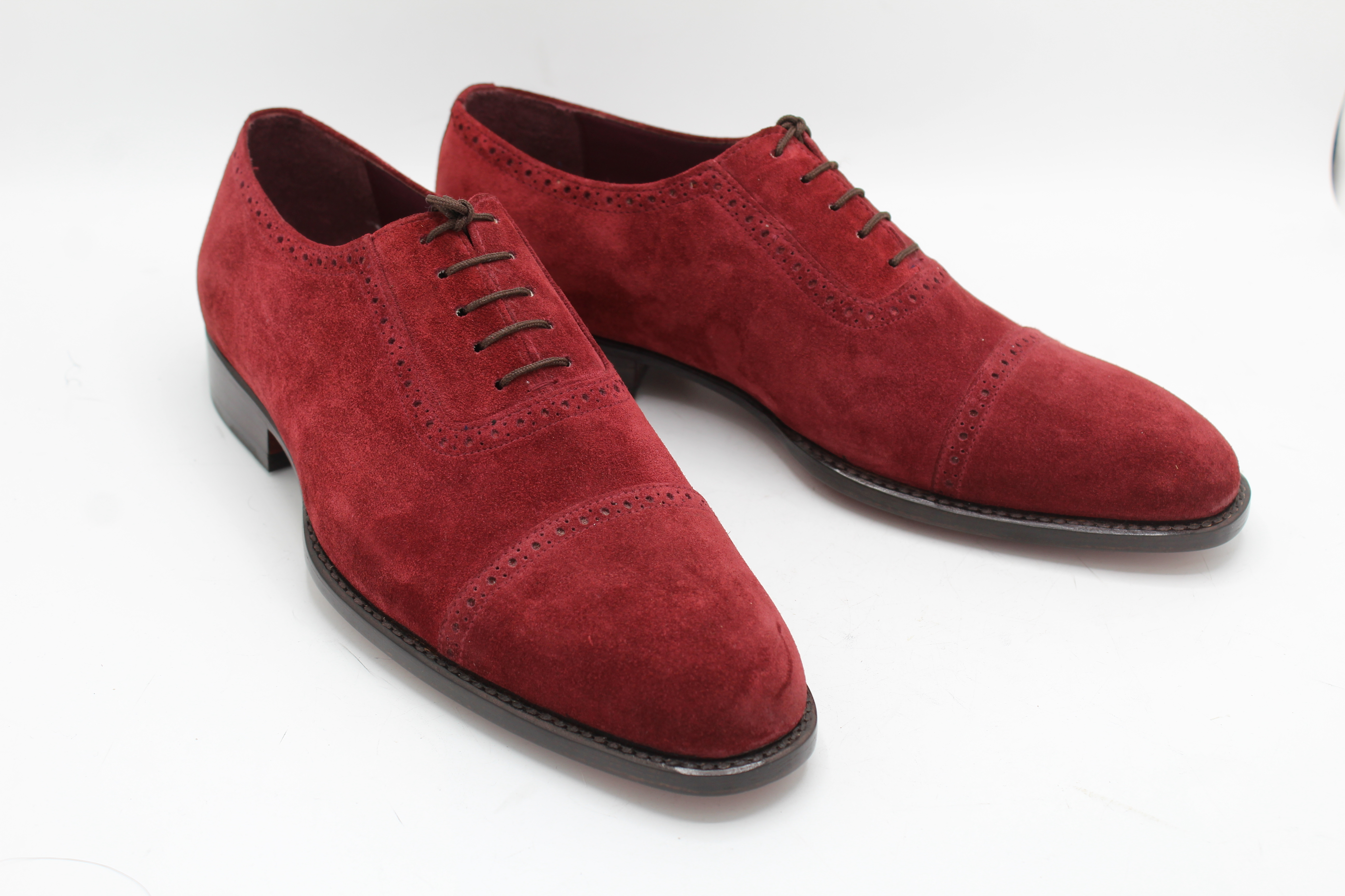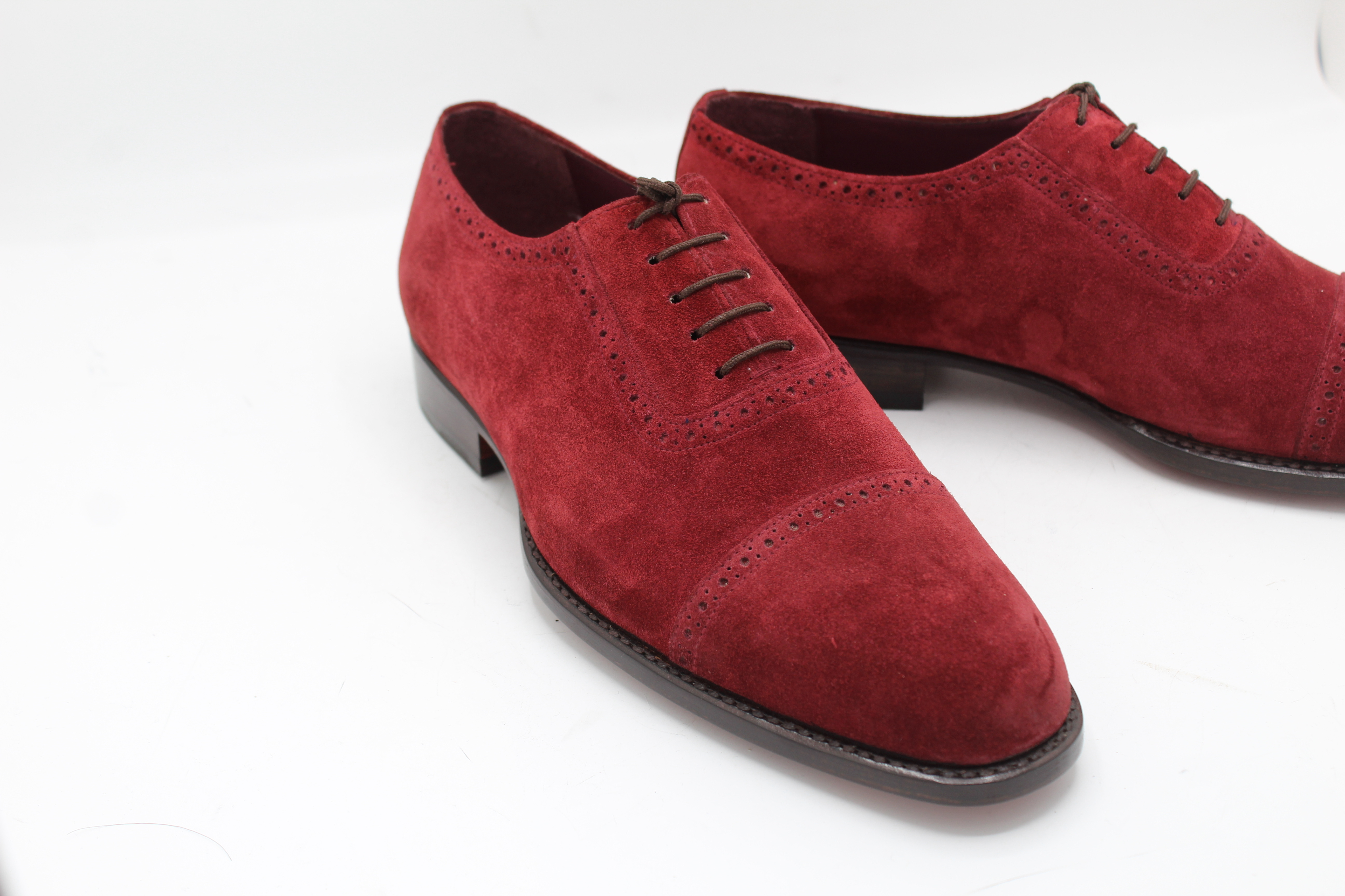 Red Suede Leather Lace up Men Formal Dress Oxford Shoes