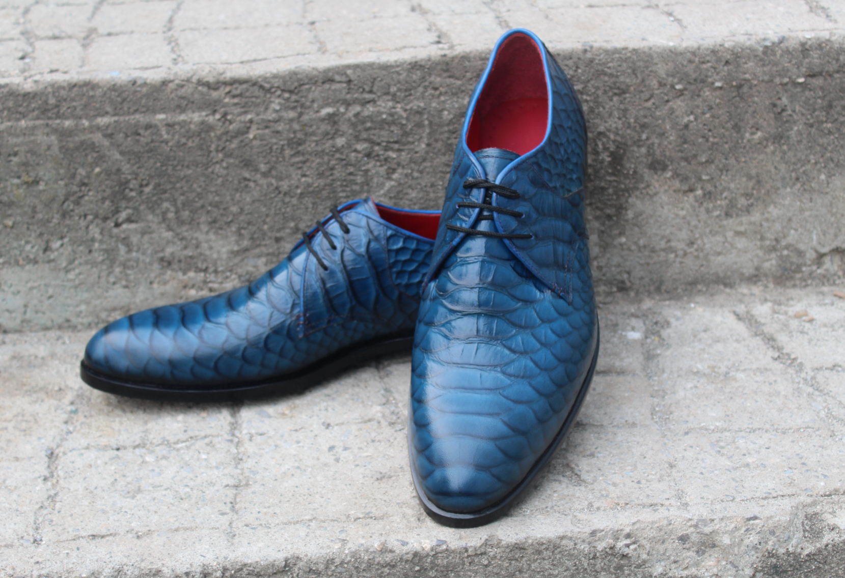 Crafted Leather Classic Blue Python Leather Lace up Oxford Dress Shoes with Matching Belt