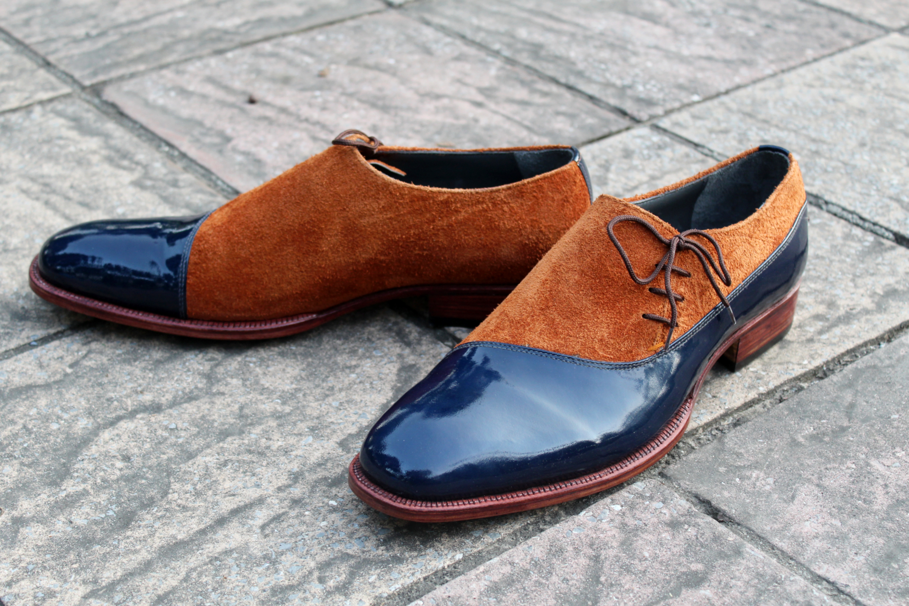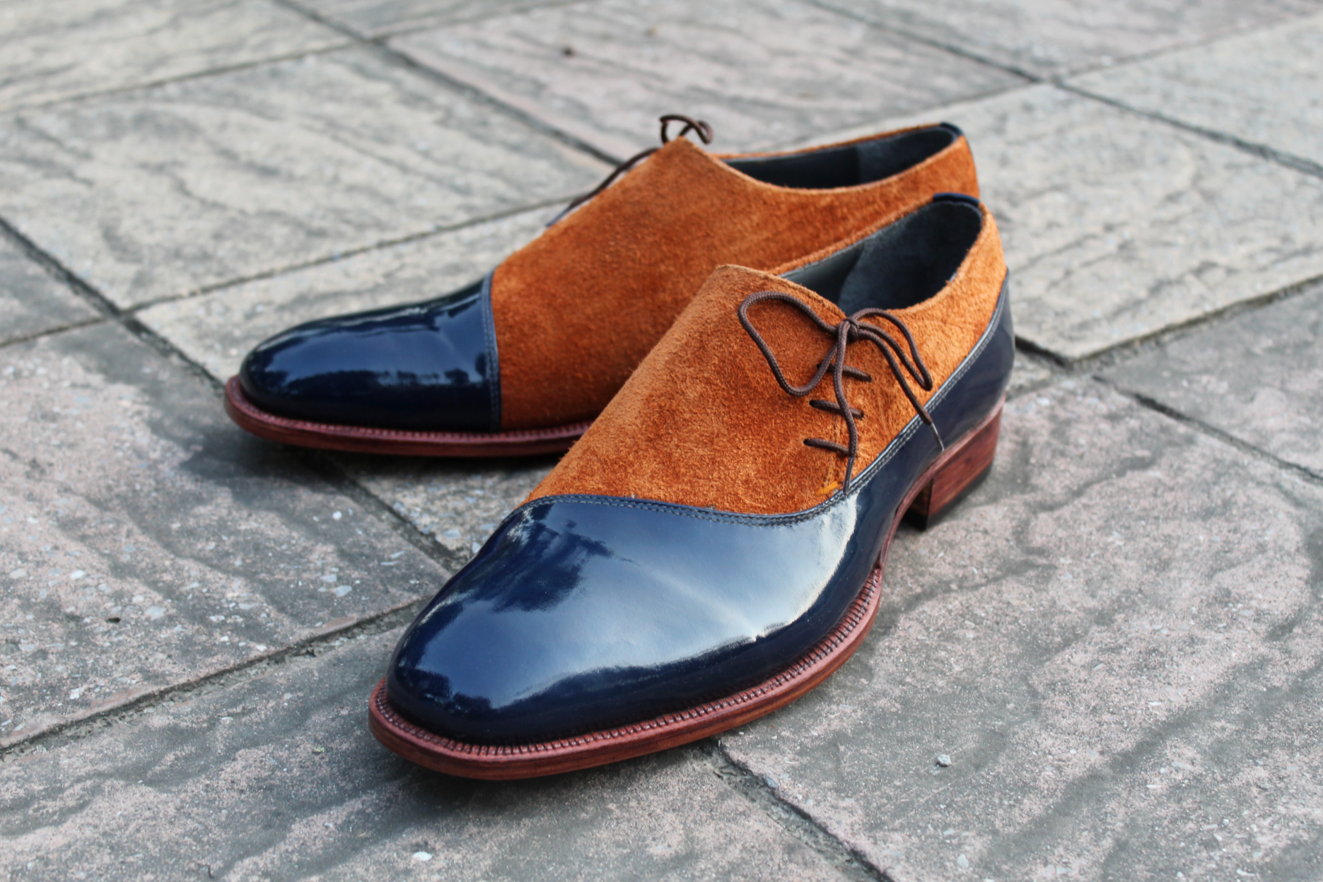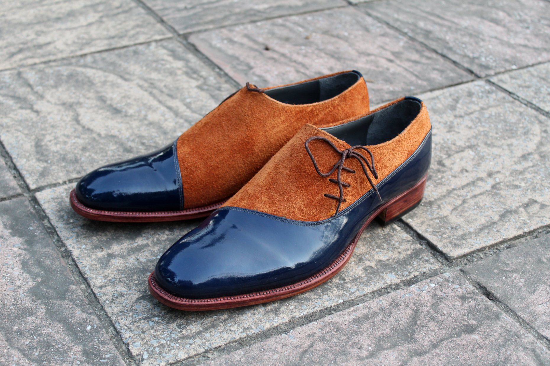 Crafted Leather Classic Blue Patent Brown Suede Leather Oxford Dress Shoes