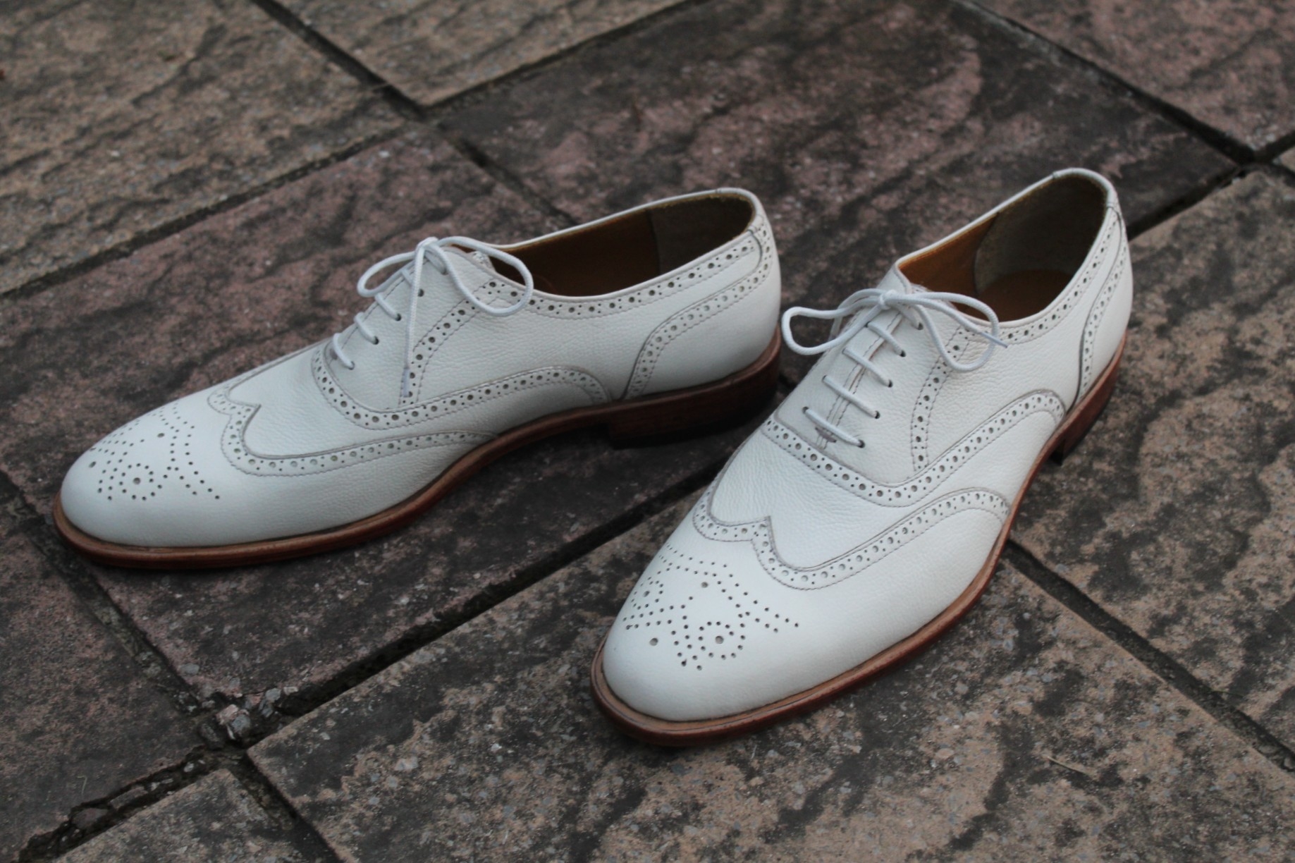 Inner: Soft Leather Sole: Leather Gender : Male Heel: Leather Color: White Style: Oxford Shoes Lining Soft Calf Leather Lining Totally Hand stitched Manufacturing time 7-10 business days If you can’t find your Size/Colorjust send us message we will make for you.