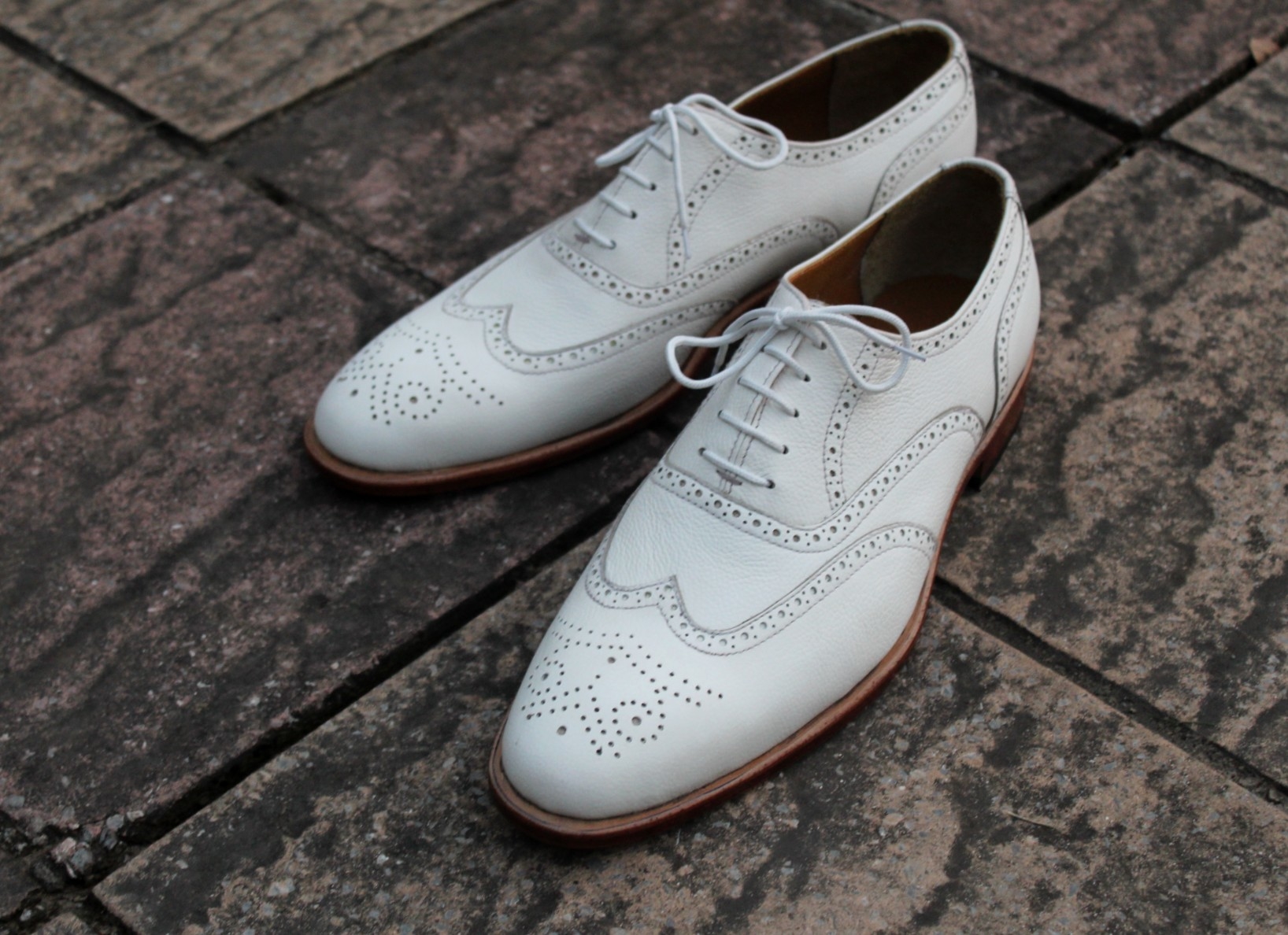 Crafted Leather Classic Handmade Men White Leather Wingtip Oxford Lace up Dress Shoes