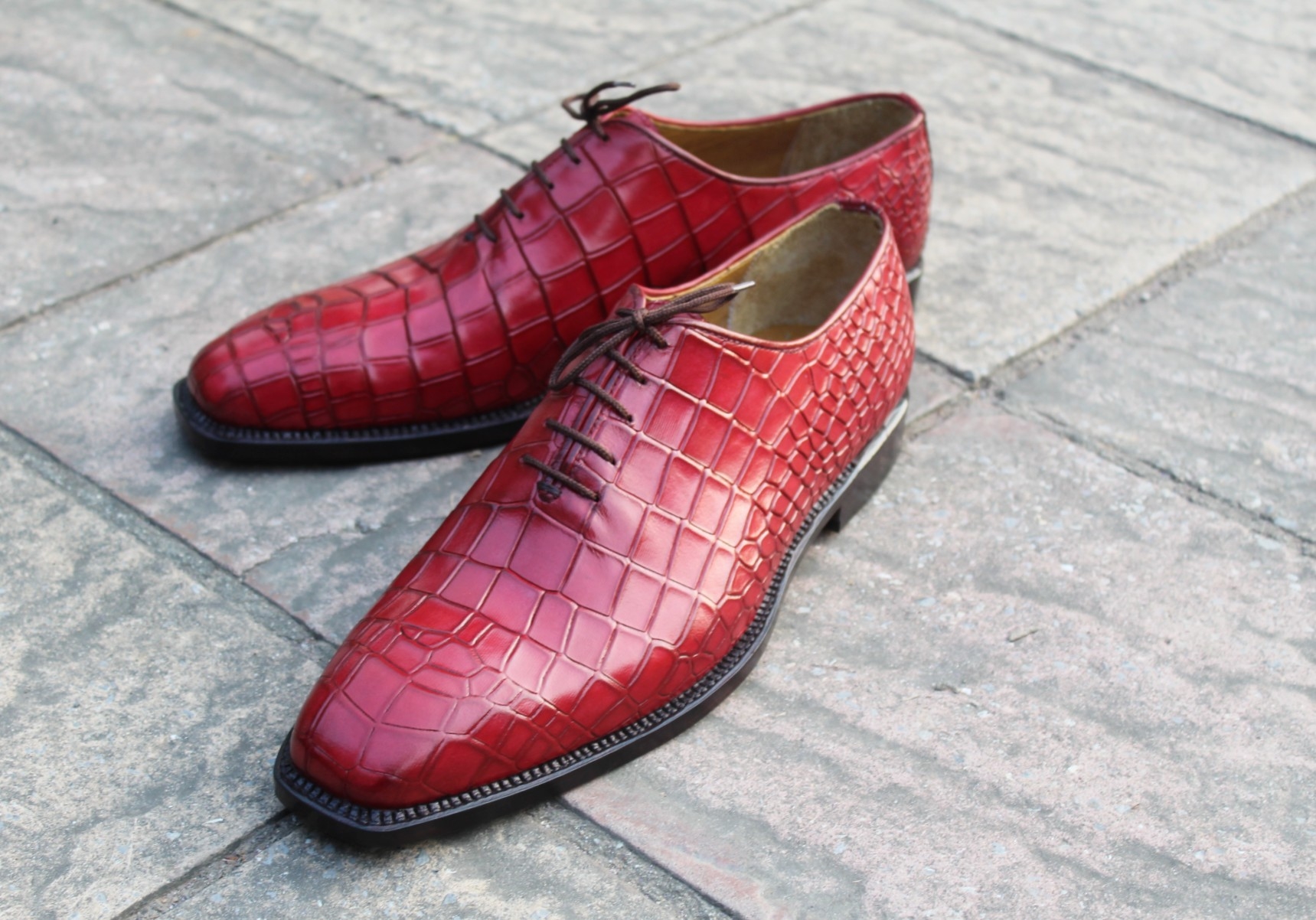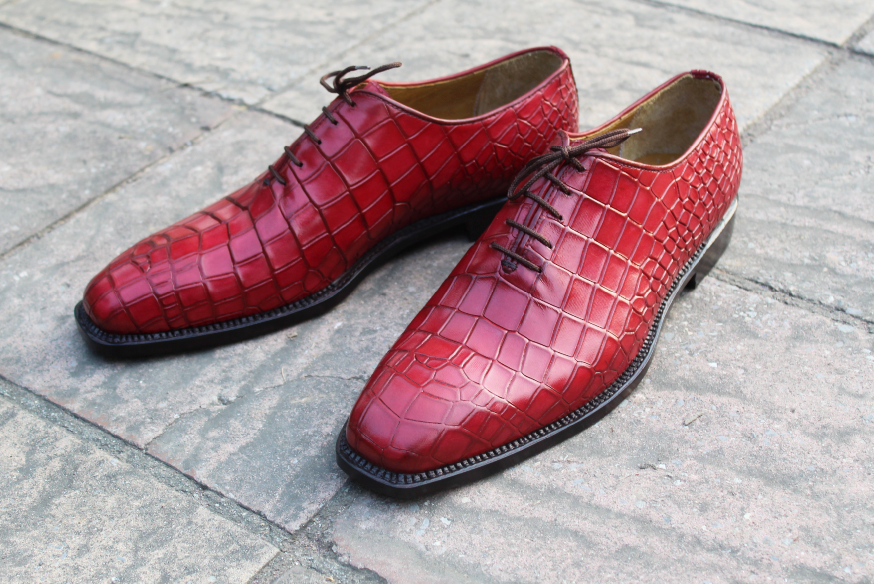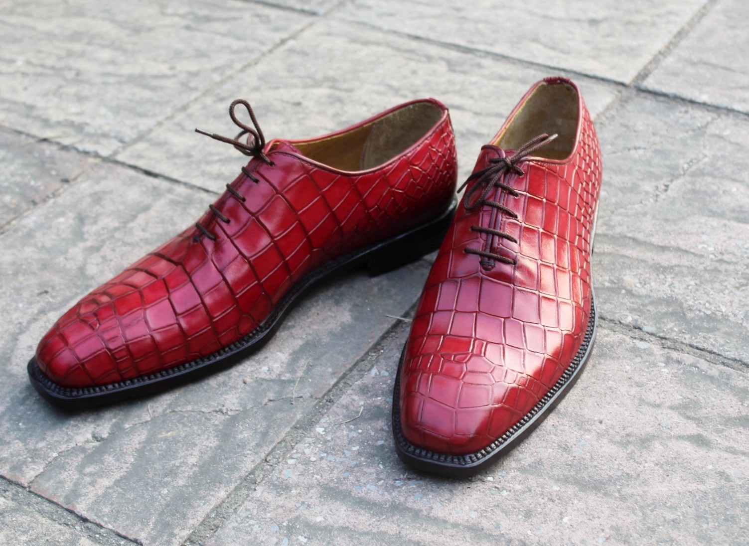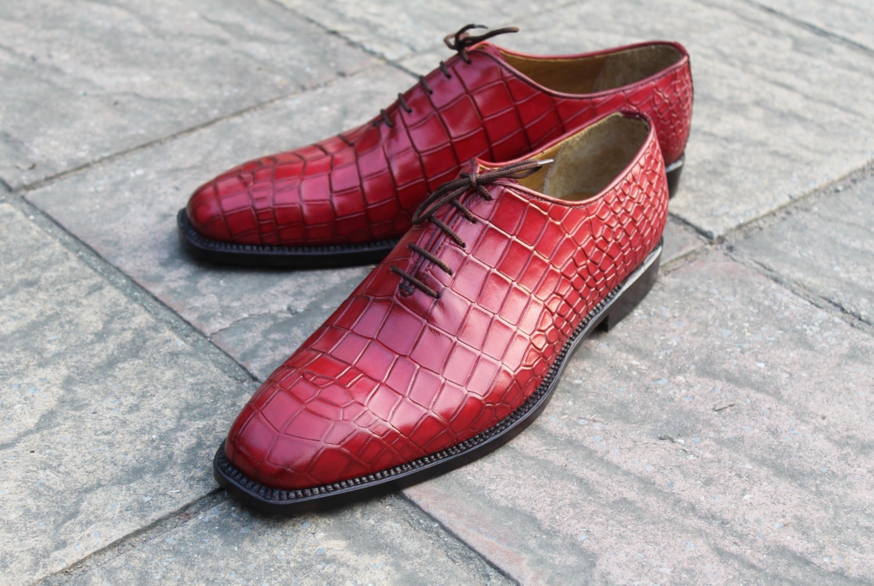 Crafted Leather Classic Handmade Red Crocodile/Alligator Leather Dress Shoes