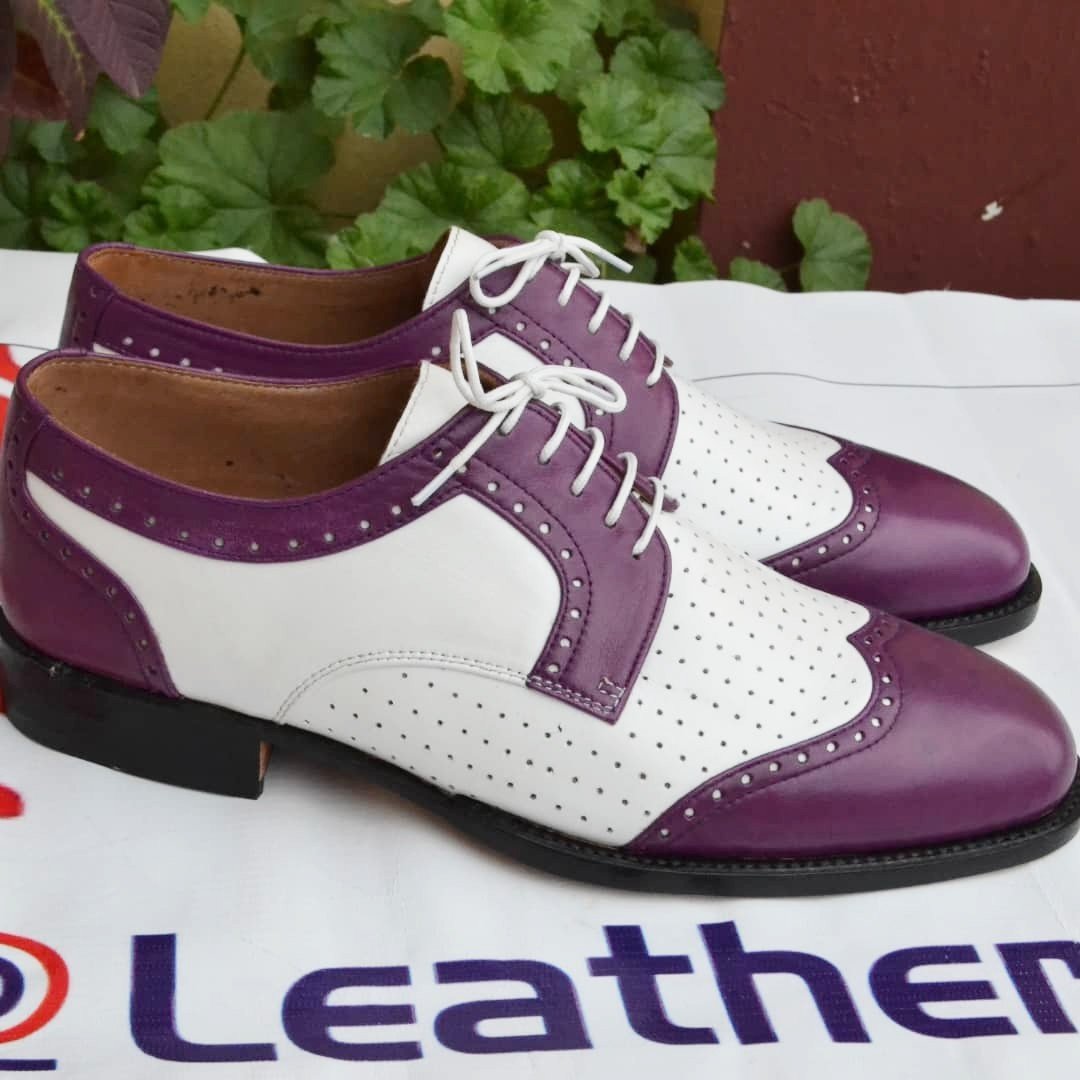 Inner: Soft Leather Sole: Leather Gender : Male Heel: Leather Color: Purple / White Style: Dress Shoes Lining Soft Calf Leather Lining Totally Hand stitched Manufacturing time 7-10 business days If you can’t find your Size/Colorjust send us message we will make for you.