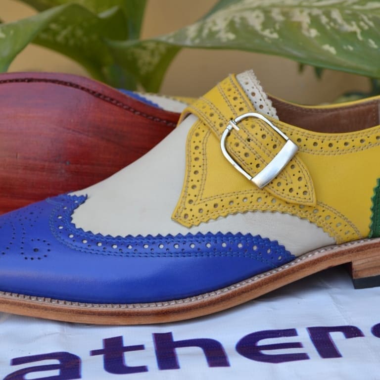 Handmade Men Multicolor Classic Men Monk Strap Shoes