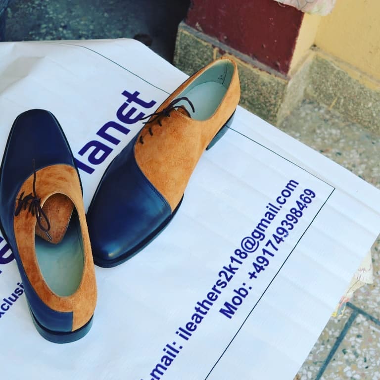 Unique Handmade Blue and Brown Suede Leather Classic Lace up Formal Oxford Dress Shoes