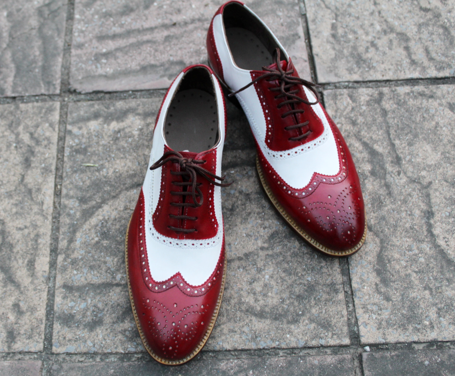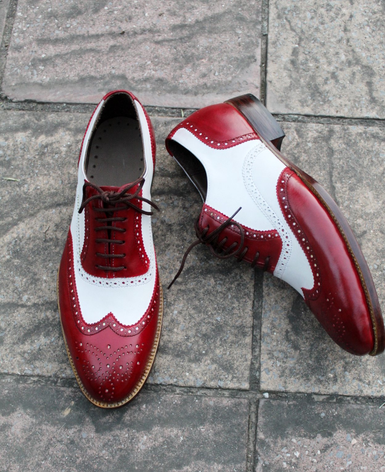 Inner: Soft Leather Sole: Leather Gender : Male Heel: Leather Color: Burgundy / White Style: Dress Shoes Lining Soft Calf Leather Lining Totally Hand stitched Manufacturing time 7-10 business days If you can’t find your Size/Colorjust send us message we will make for you.