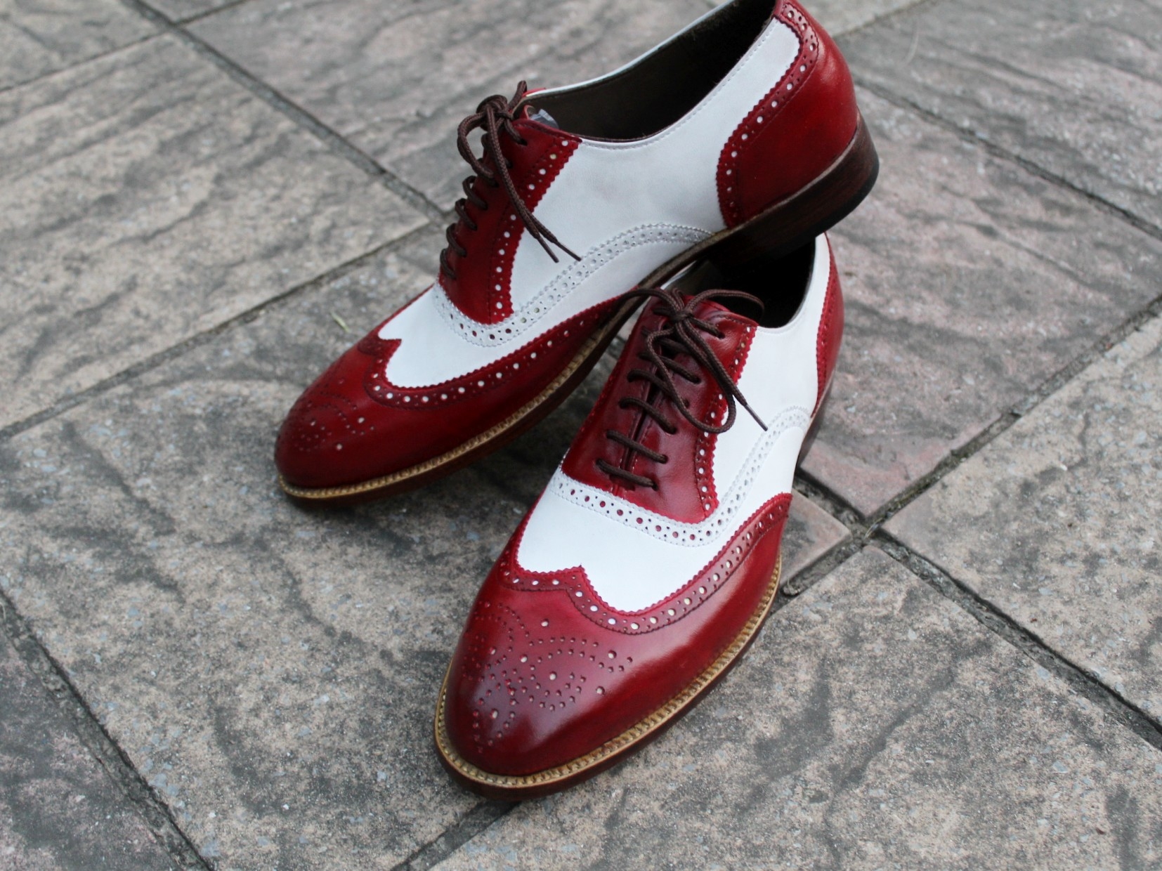 Crafted Leather Classic Handmade Burgundy White Leather Dress Oxford Shoes