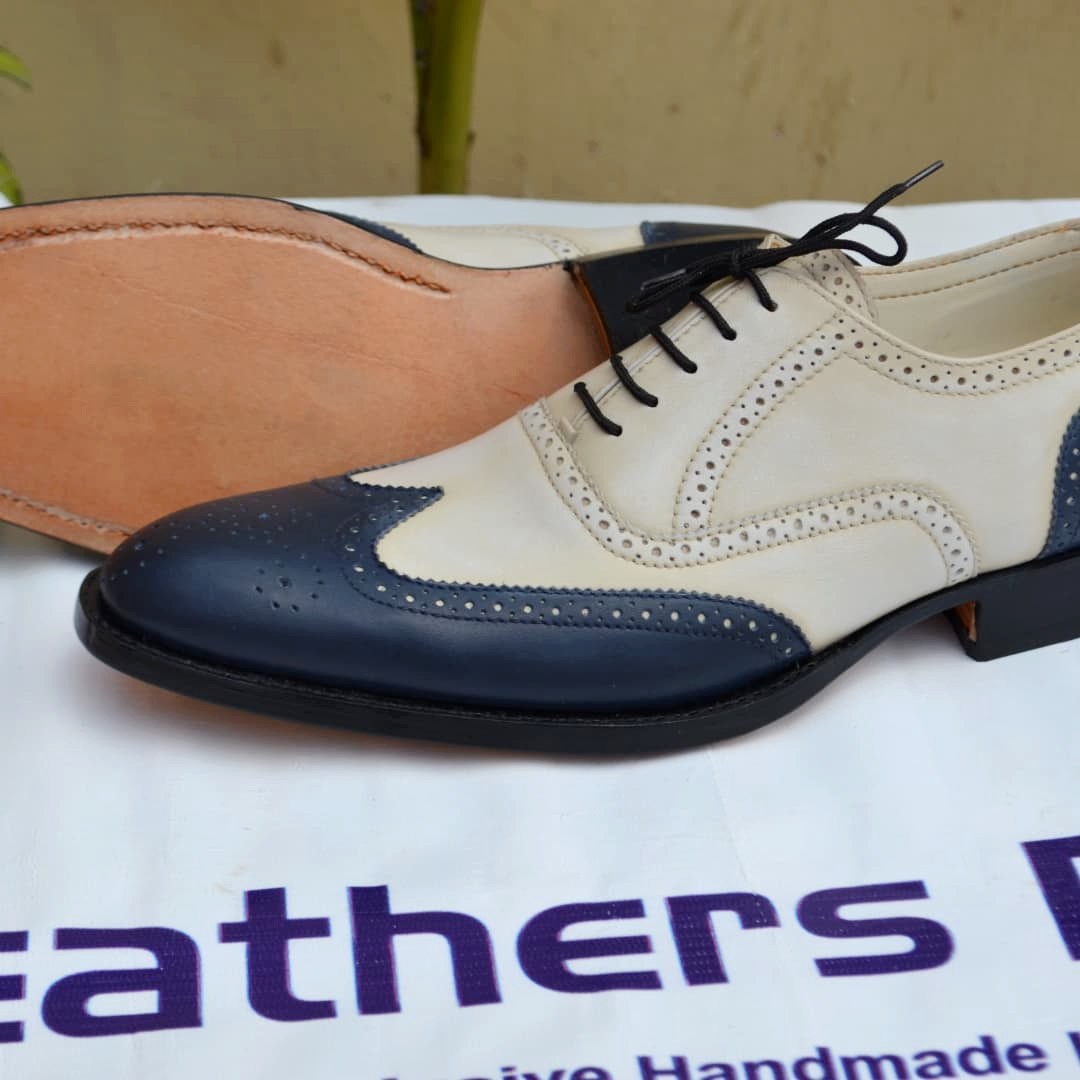 Inner: Soft Leather Sole: Leather Gender : Male Heel: Leather Color: Blue / Beige Style: Dress Shoes Lining Soft Calf Leather Lining Totally Hand stitched Manufacturing time 7-10 business days If you can’t find your Size/Colorjust send us message we will make for you.