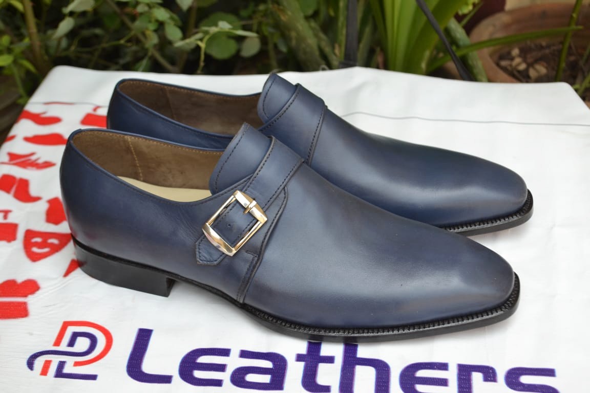 Handmade Blue Genuine Leather Single Monk Strap Dress Shoes
