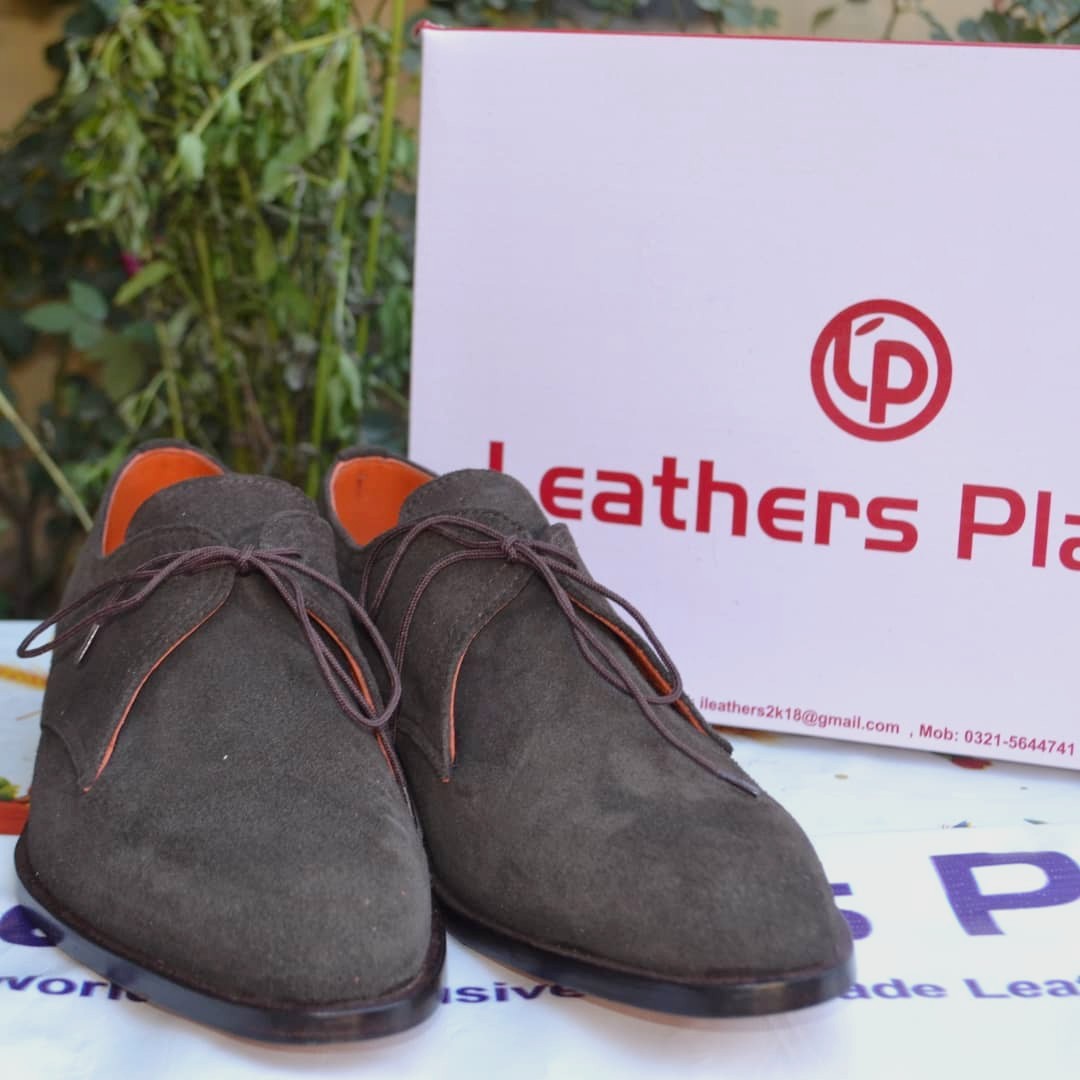 Crafted Leather Handmade Men Brown Suede Leather Lace up Dress Shoes