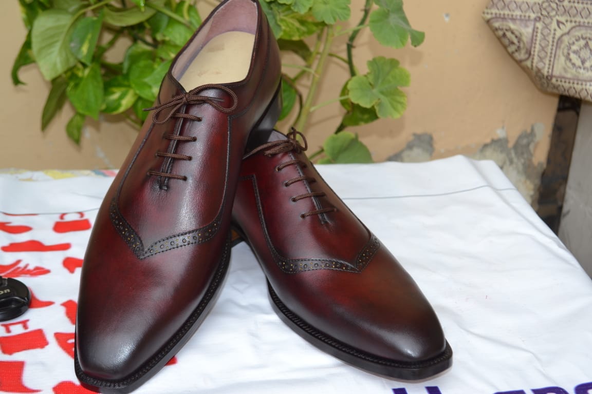 Inner: Soft Leather  Sole: Leather  Gender : Male Heel: Leather Color:  Bordeaux  Style:   Wingtip Oxford Shoes Lining Soft Calf Leather Lining Totally Hand stitched Manufacturing time 7-10 business days If you can’t find your Size/Colorjust send us message we will make for you.