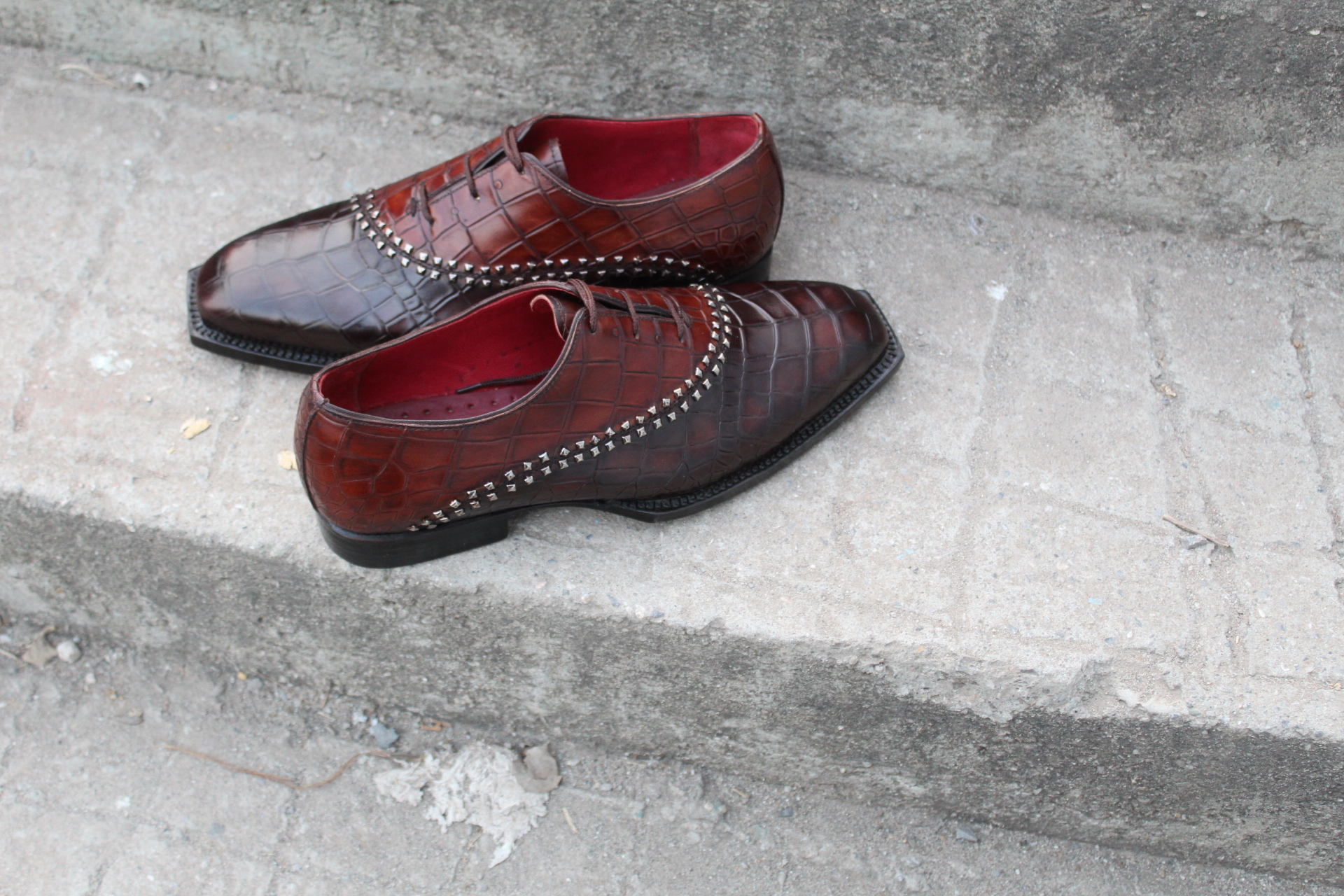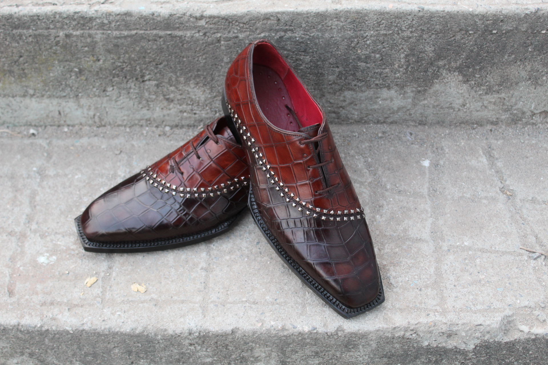 Crafted Leather Luxury Handmade Mens Unique Brown Crocodile Texture Leather Alligator Dress Fashion Oxford Shoes