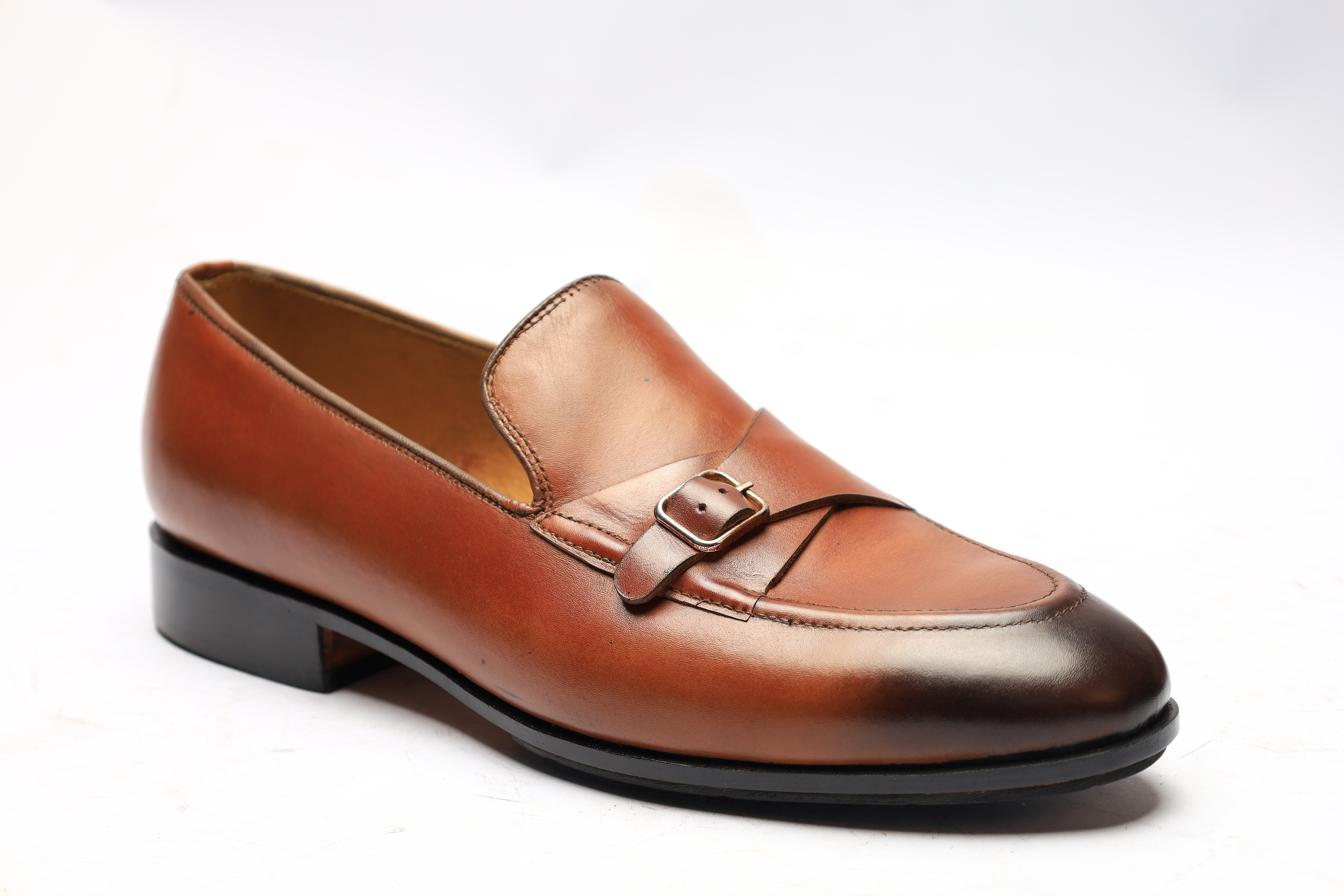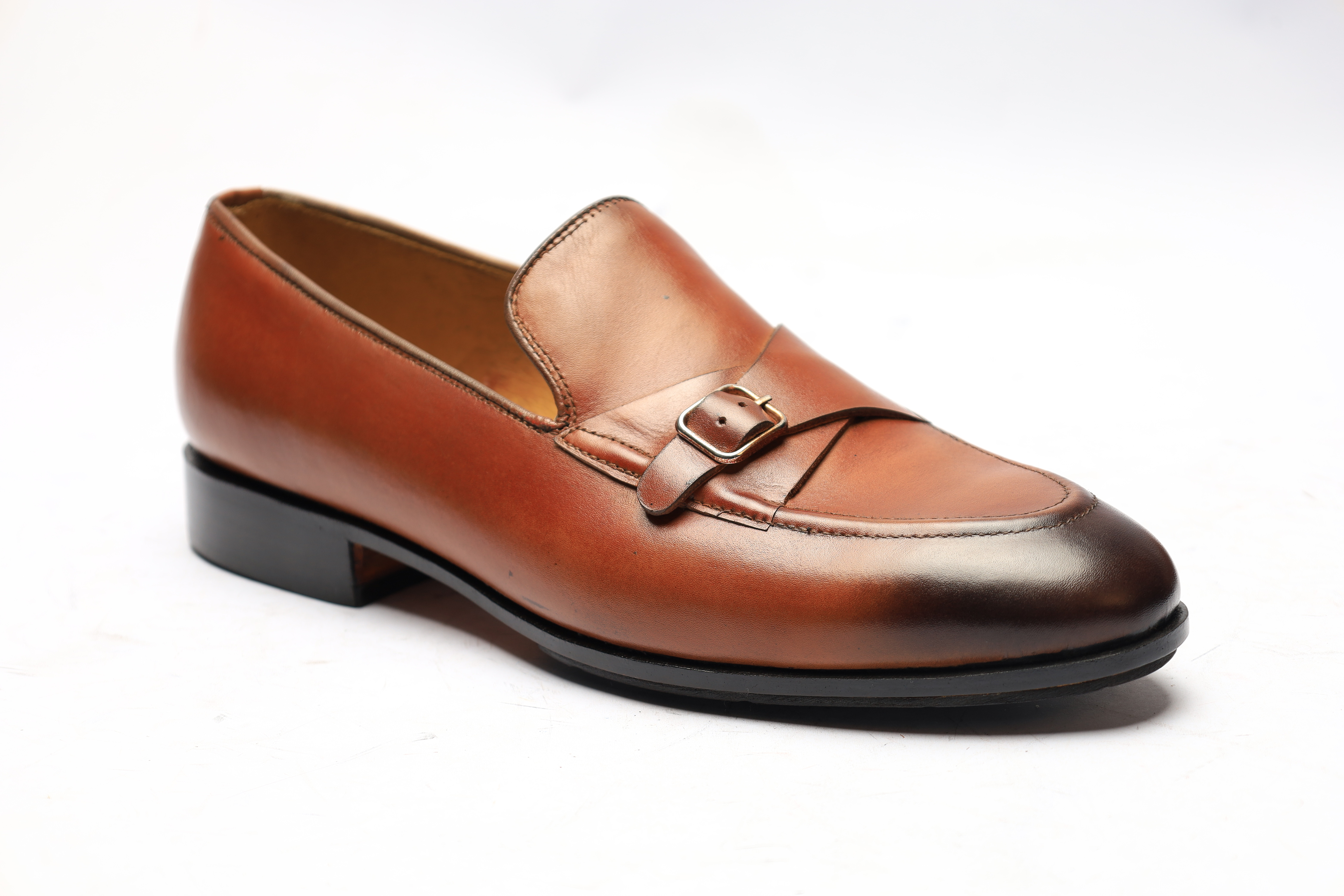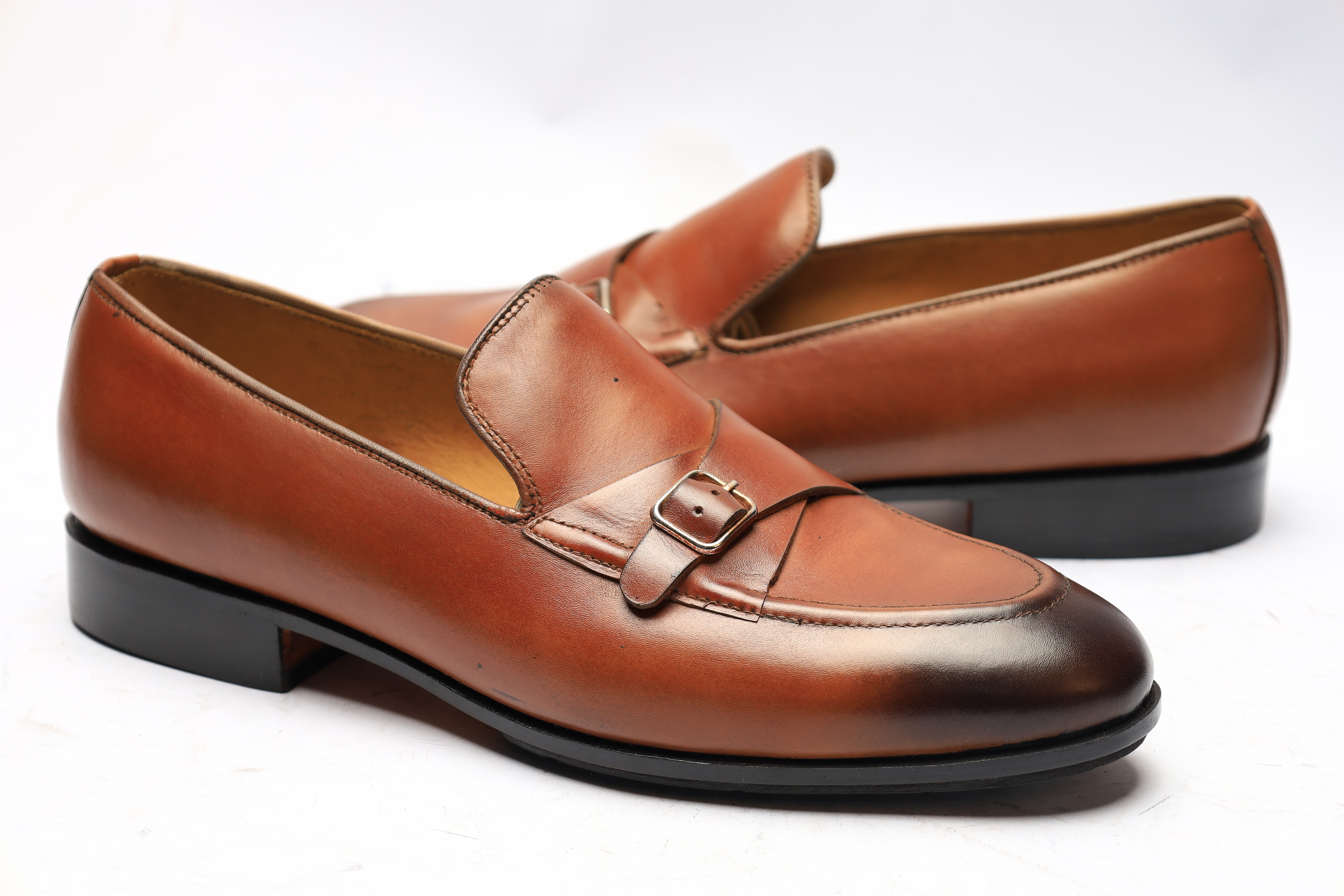 Crafted Leather Classic Brown Monk Strap Loafers Dress Shoes