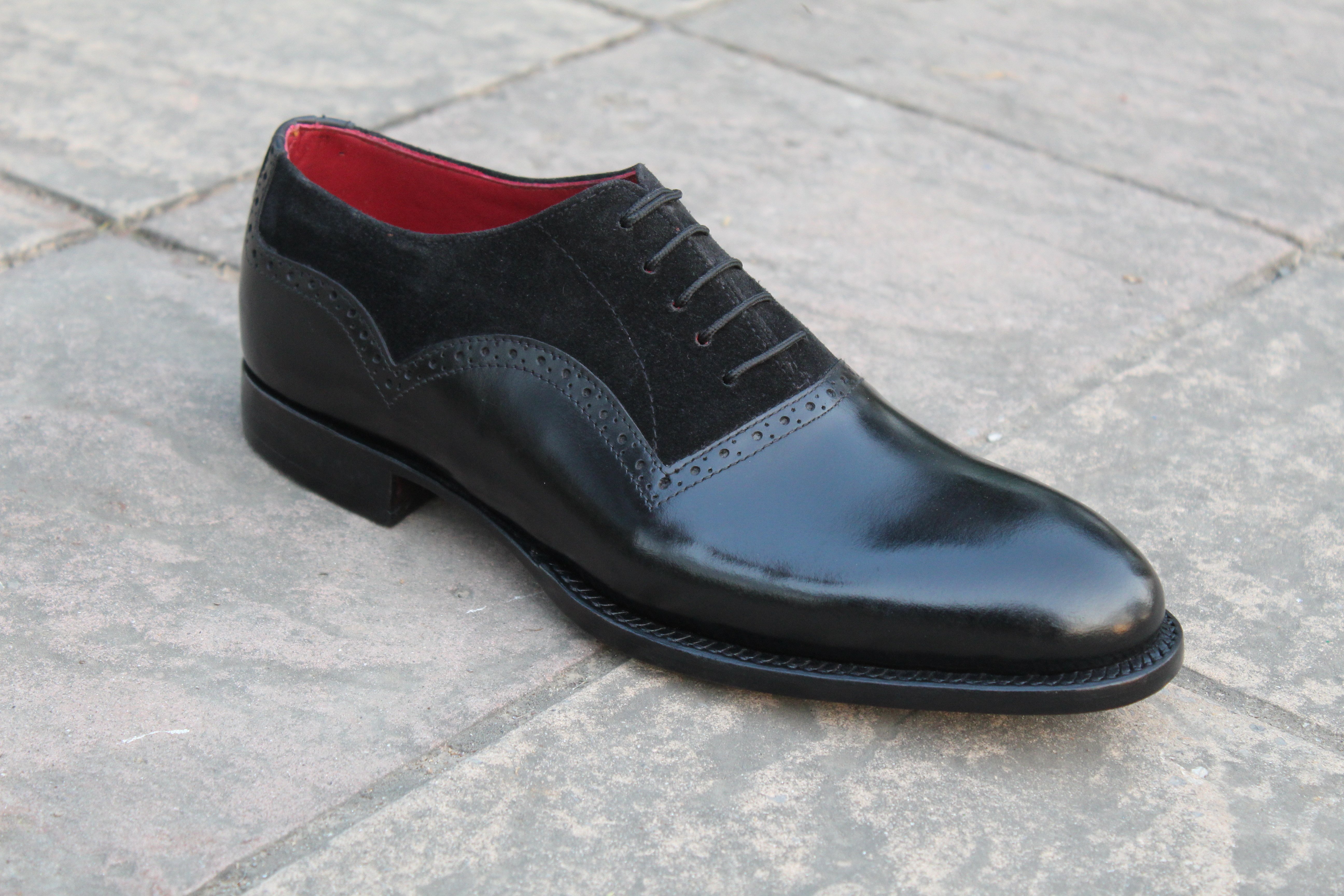 Crafted Leather Black / Suede Classic Dress Lace up Oxford Shoes
