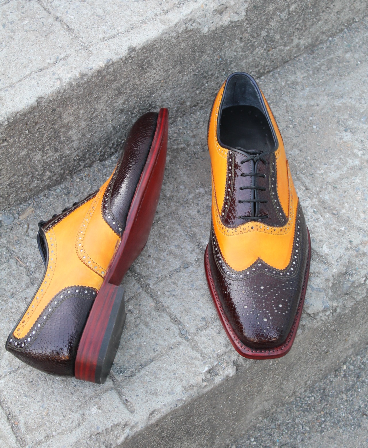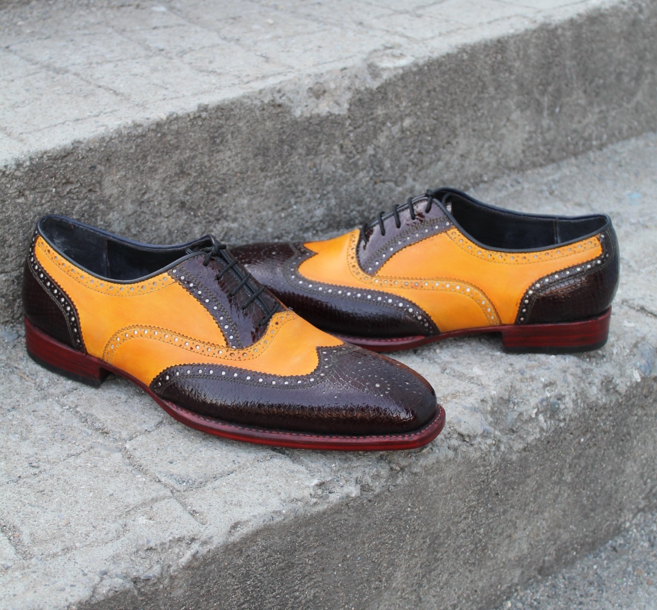 Crafted Leather Handmade Black Camel Color Leather Wingtip Oxford Dress Shoes