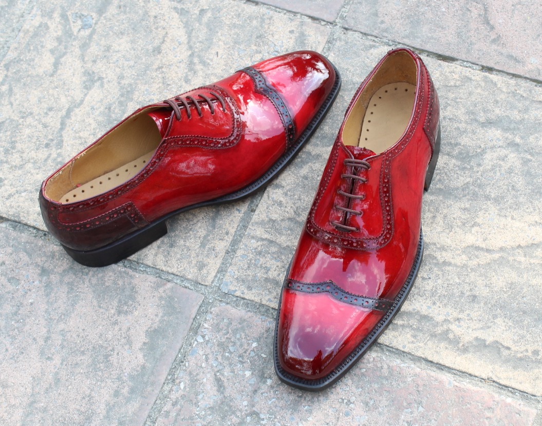 Crafted Leather Handmade Men Burgundy Oxford Wingtip Lace up Dress Shoes