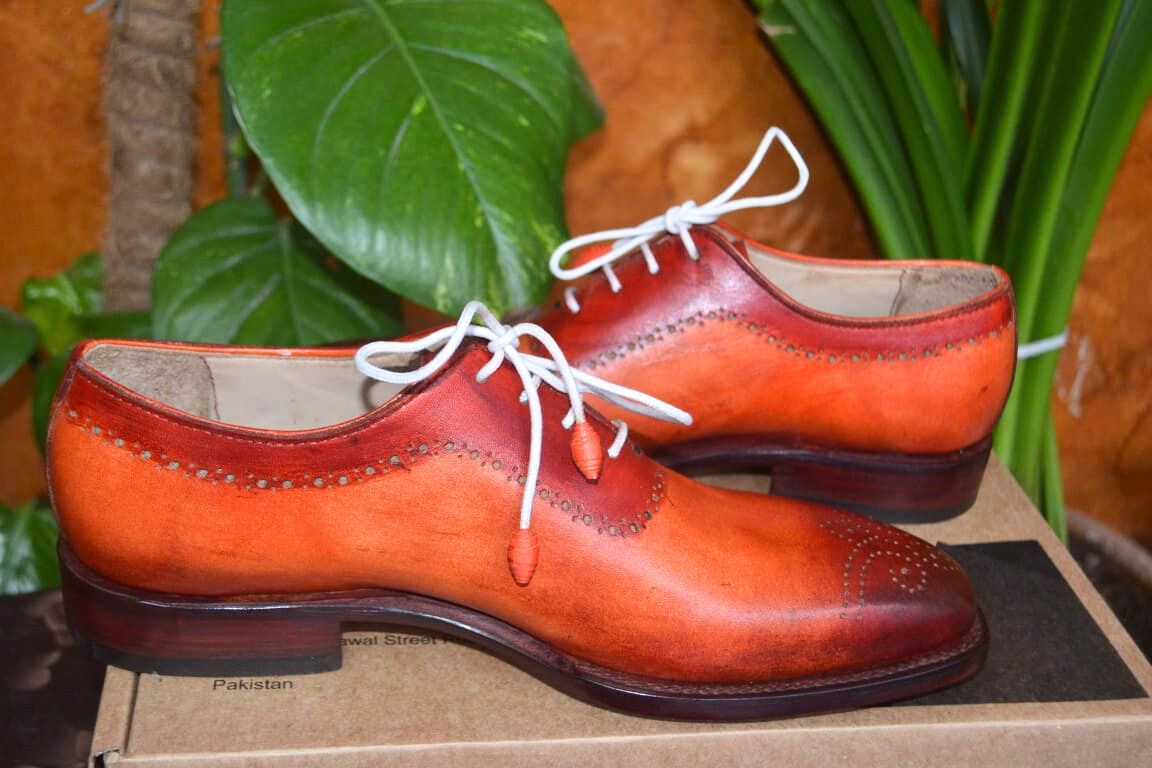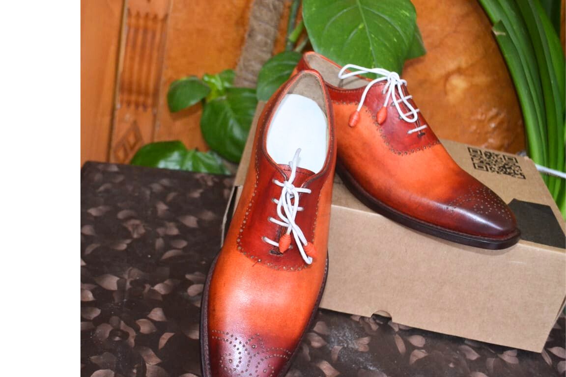 Crafted Leather Handmade Oxfords Brown & Camel Leather Dress Shoes