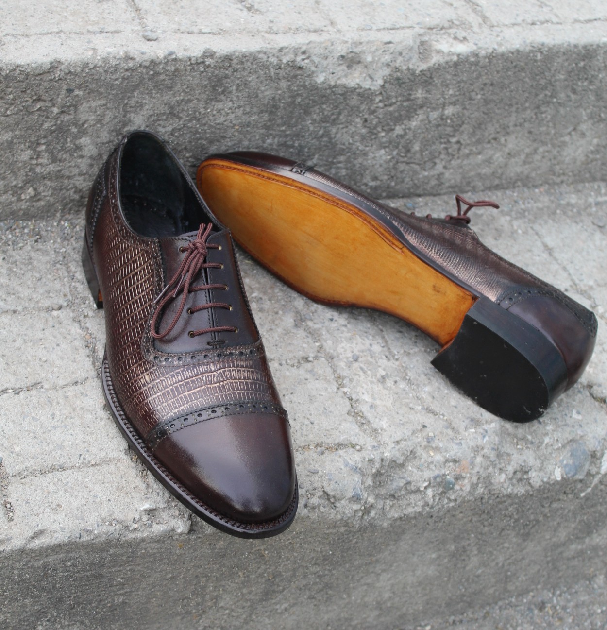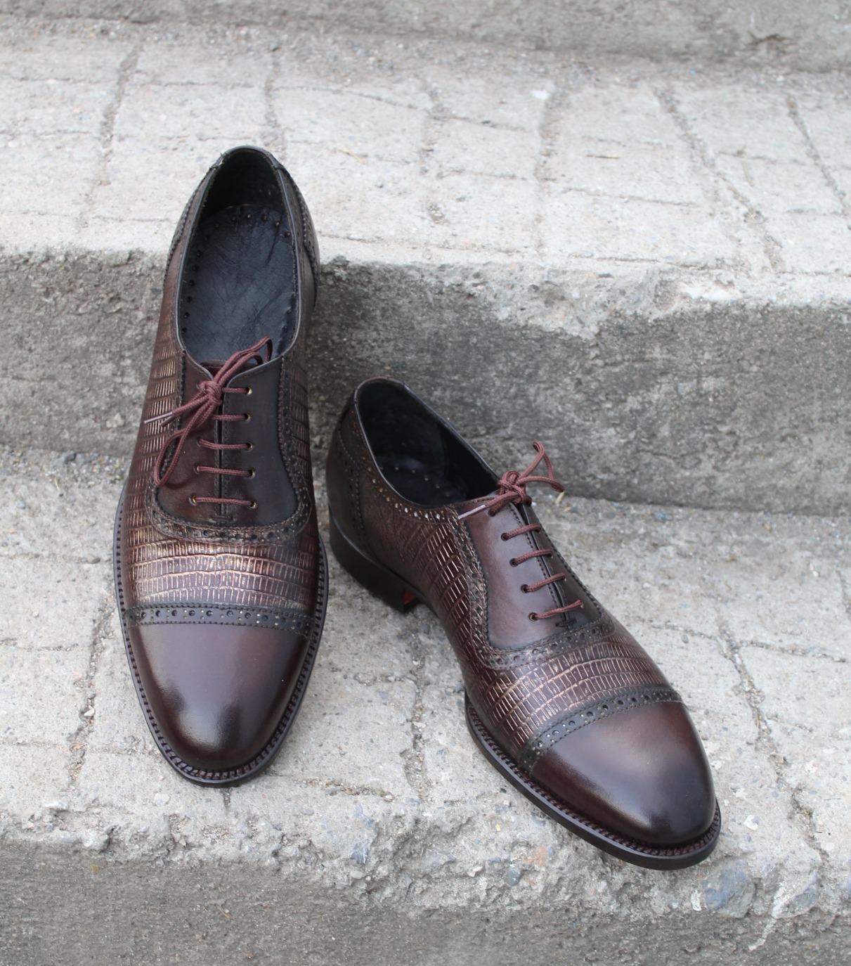 Crafted Leather Handmade Men New Fashion Fish Pattern Genuine Leather Dress Shoes