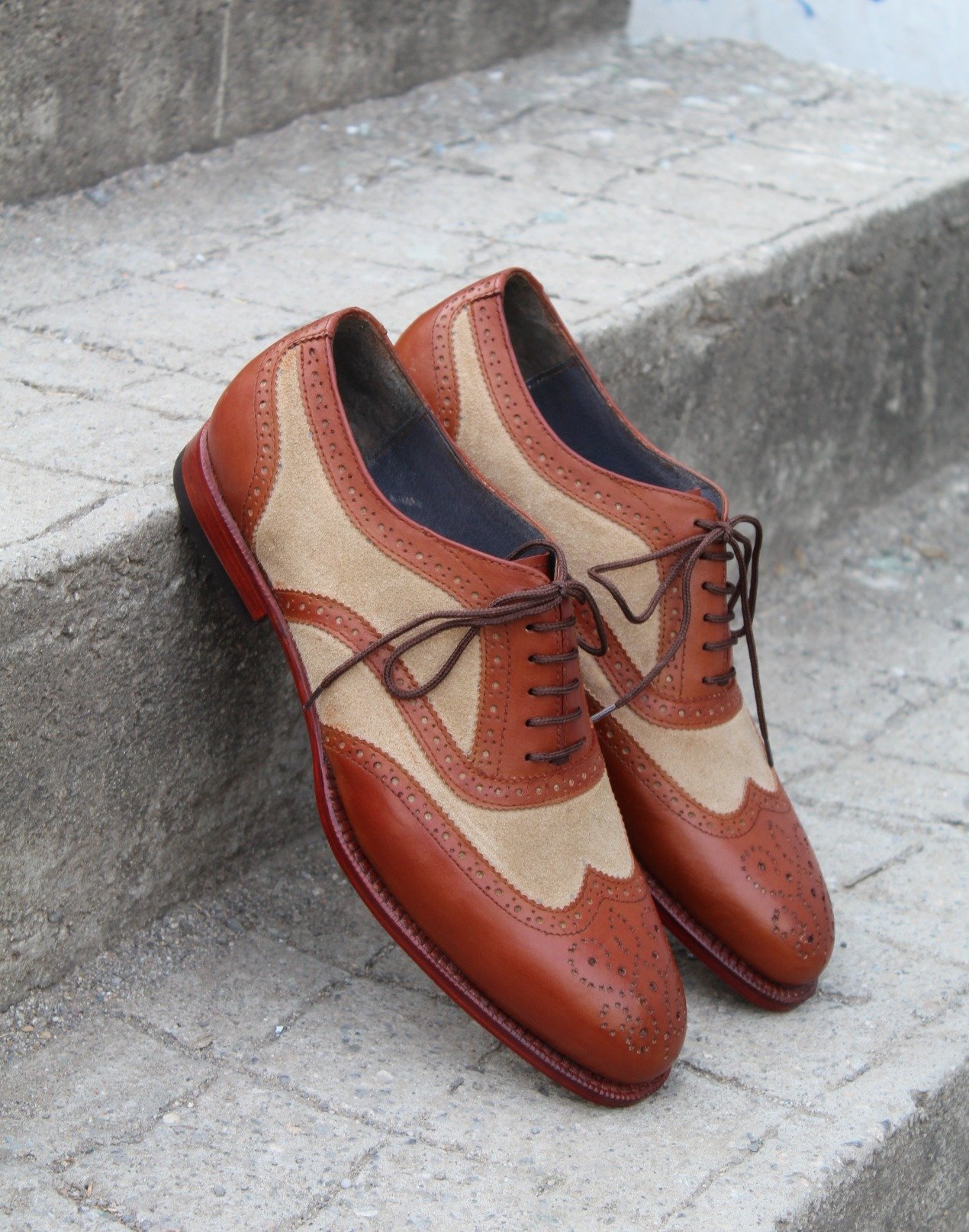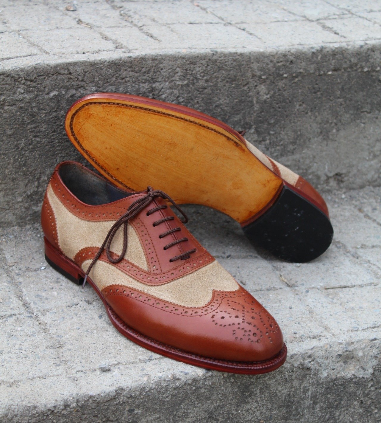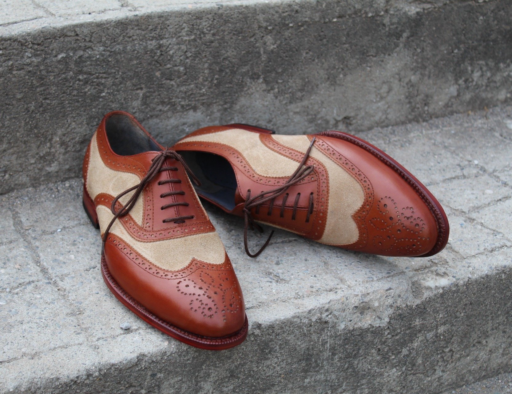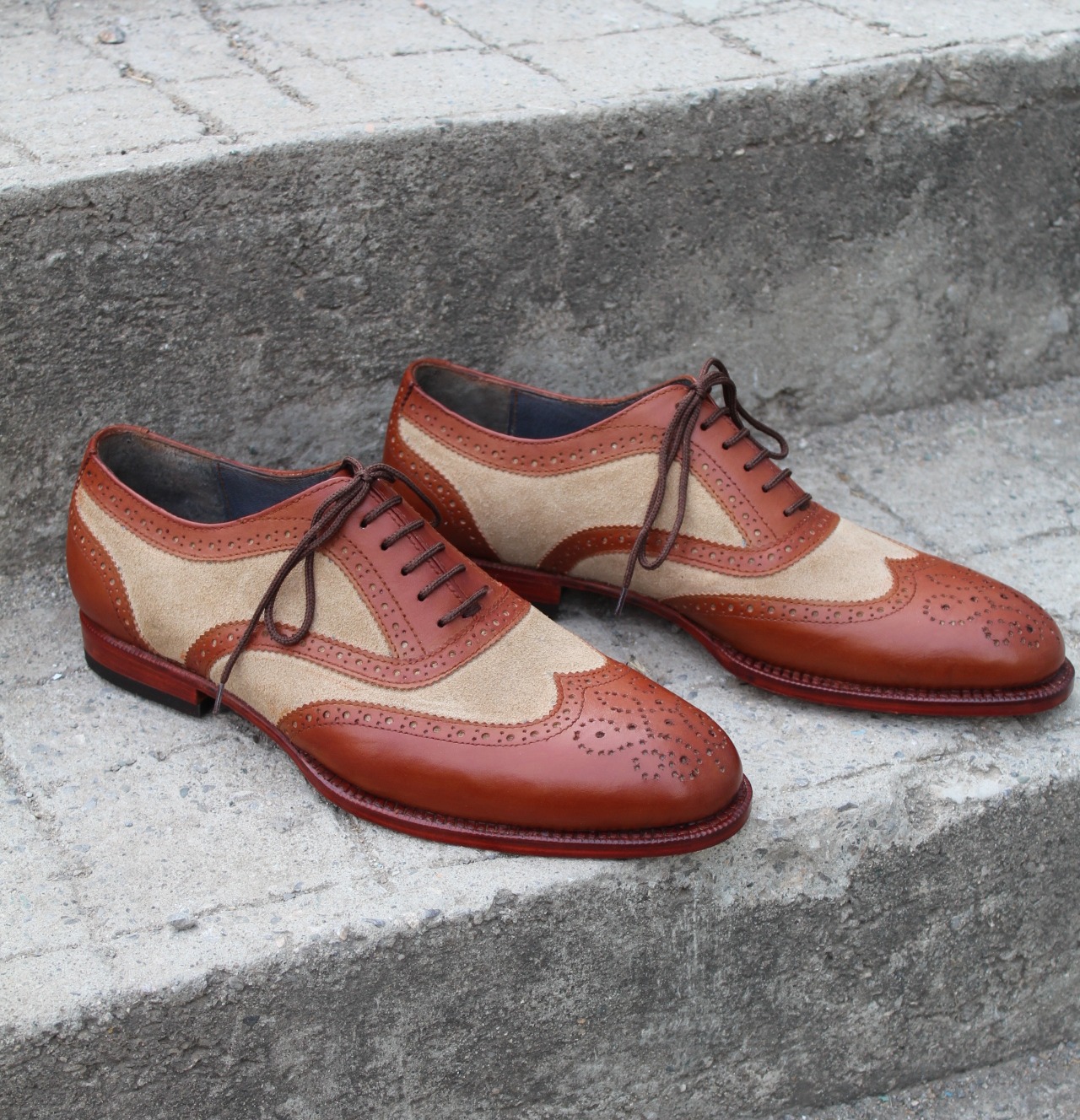 Crafted Leather Handmade Brown Suede Leather Wingtip Oxford Lace up Dress Shoes