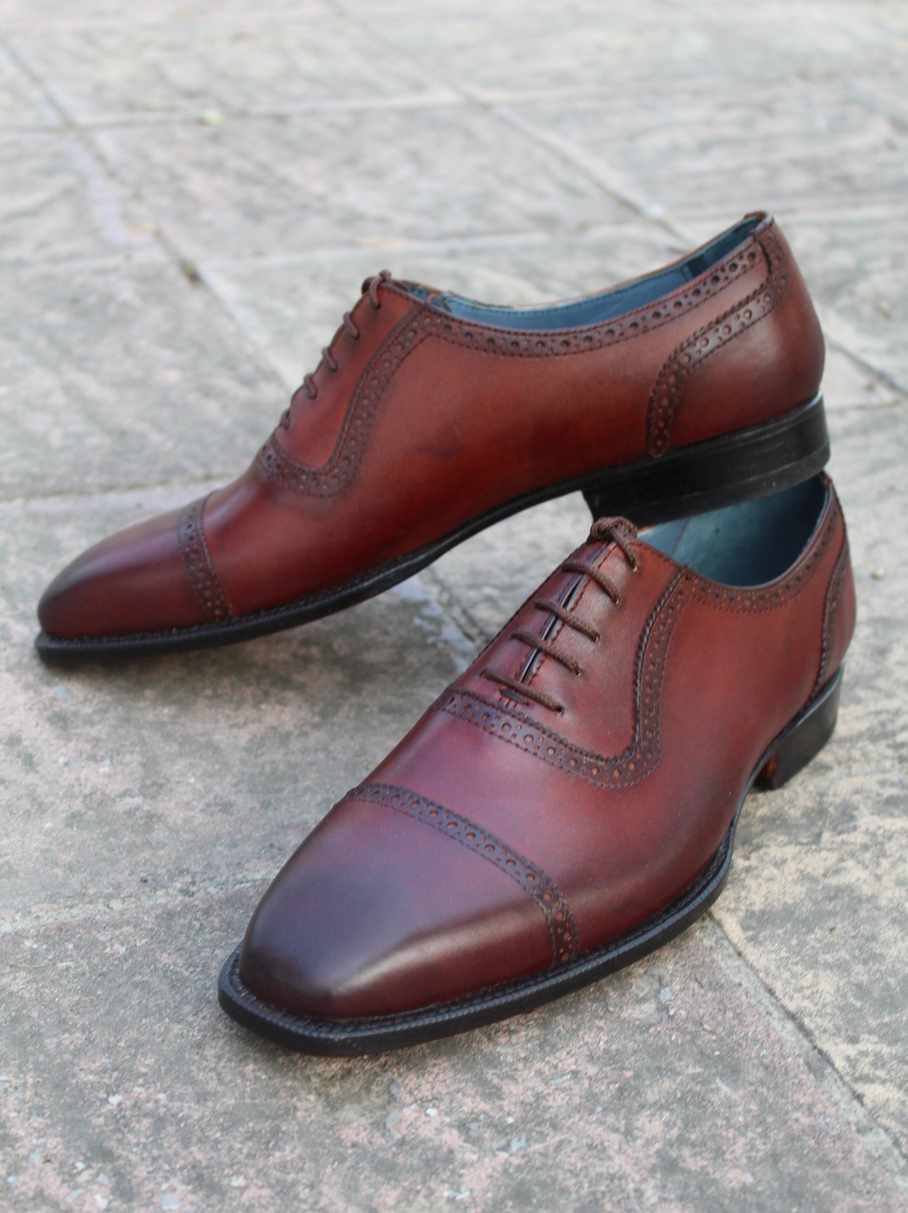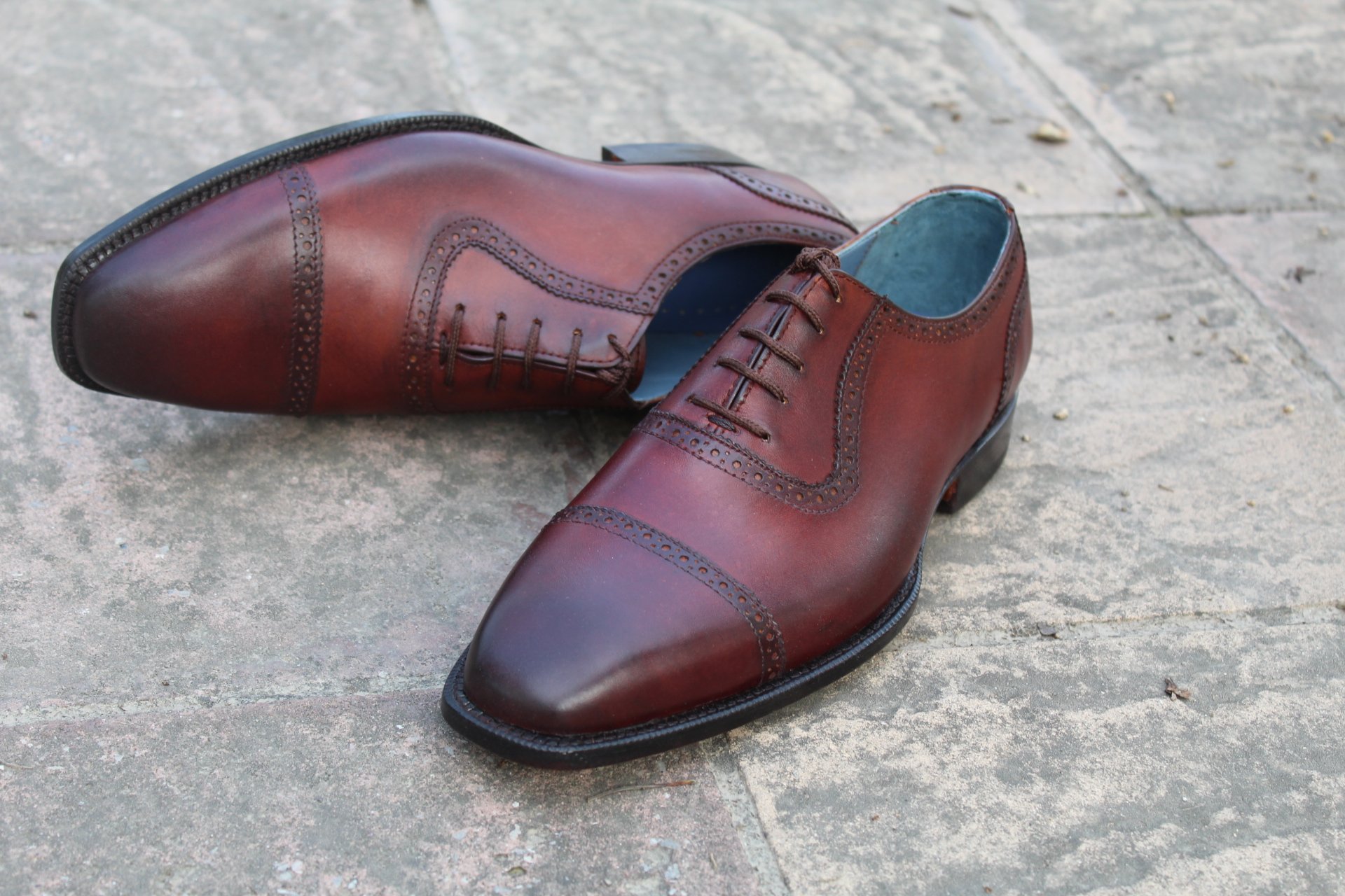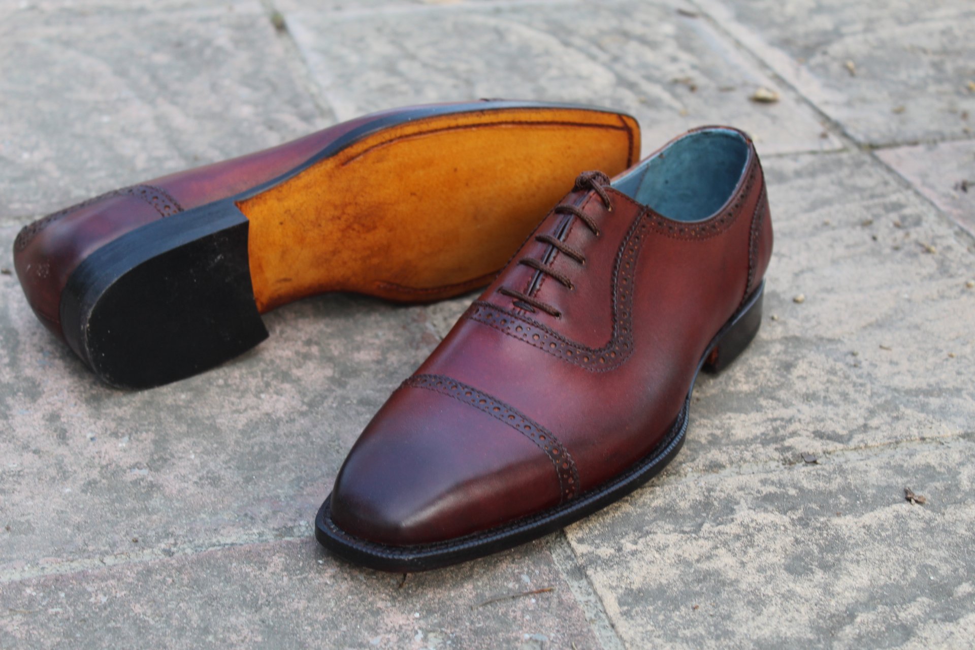 Inner: Soft Leather Sole: Leather Gender : Male Heel: Leather Color: Brown Style: Oxford Shoes Lining Soft Calf Leather Lining Totally Hand stitched Manufacturing time 7-10 business days If you can’t find your Size/Colorjust send us message we will make for you.