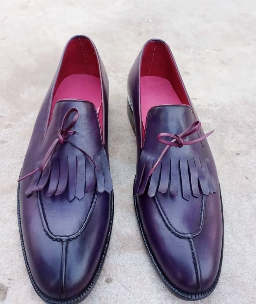 Inner: Soft Leather Sole: Leather Gender : Male Heel: Leather Color: Purple Style: Fringes Tassel Loafers Shoes Lining Soft Calf Leather Lining Totally Hand stitched Manufacturing time 7-10 business days If you can’t find your Size/Colorjust send us message we will make for you.