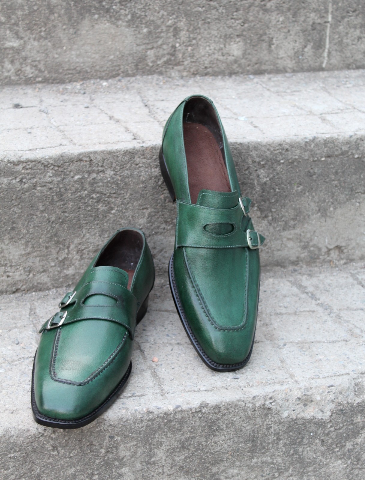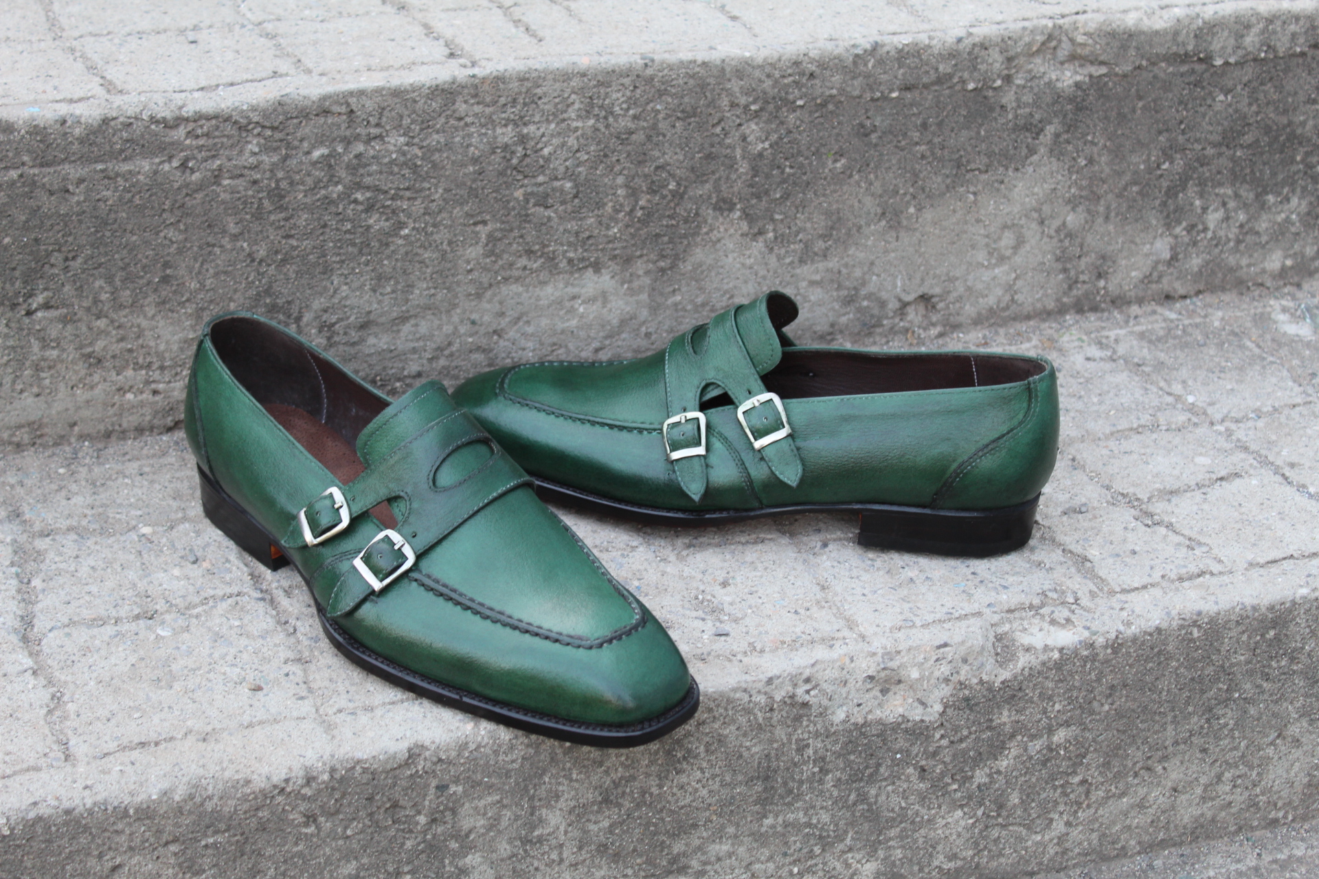 Inner: Soft Leather Sole: Leather Gender : Male Heel: Leather Color: Green Style: Double Monk Strap Shoes Lining Soft Calf Leather Lining Totally Hand stitched Manufacturing time 7-10 business days If you can’t find your Size/Colorjust send us message we will make for you.