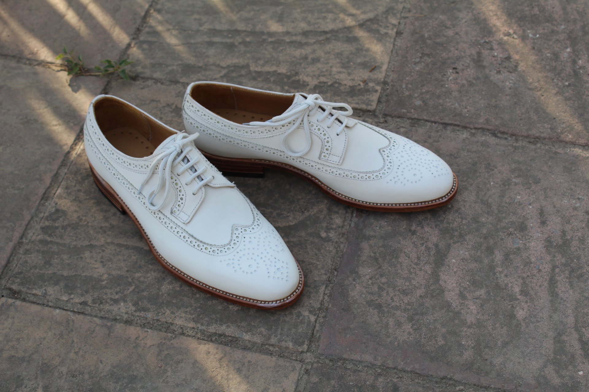 Inner: Soft Leather Sole: Leather Gender : Male Heel: Leather Color: White Style: Oxford Shoes Lining Soft Calf Leather Lining Totally Hand stitched Manufacturing time 7-10 business days If you can’t find your Size/Colorjust send us message we will make for you.