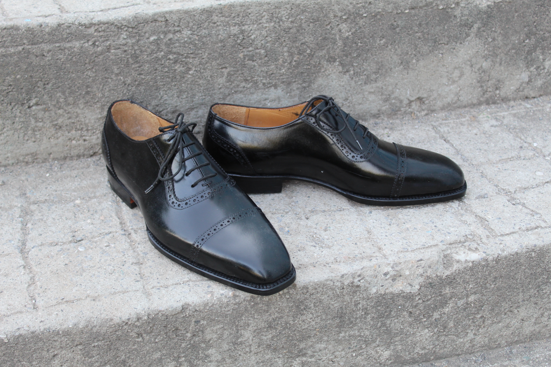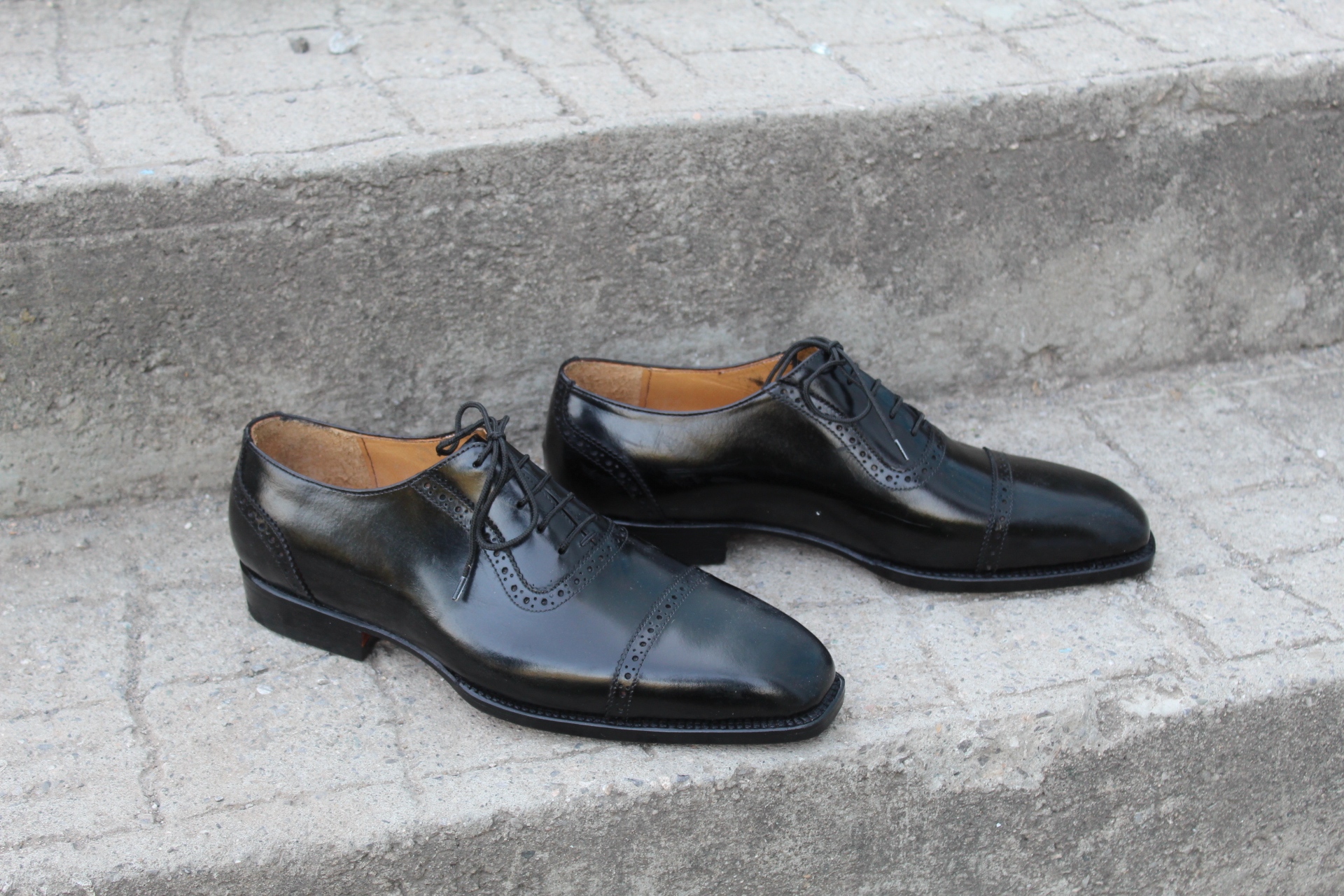 Inner: Soft Leather Sole: Leather Gender : Male Heel: Leather Color: Black Style: Oxford Shoes Lining Soft Calf Leather Lining Totally Hand stitched Manufacturing time 7-10 business days If you can’t find your Size/Colorjust send us message we will make for you.