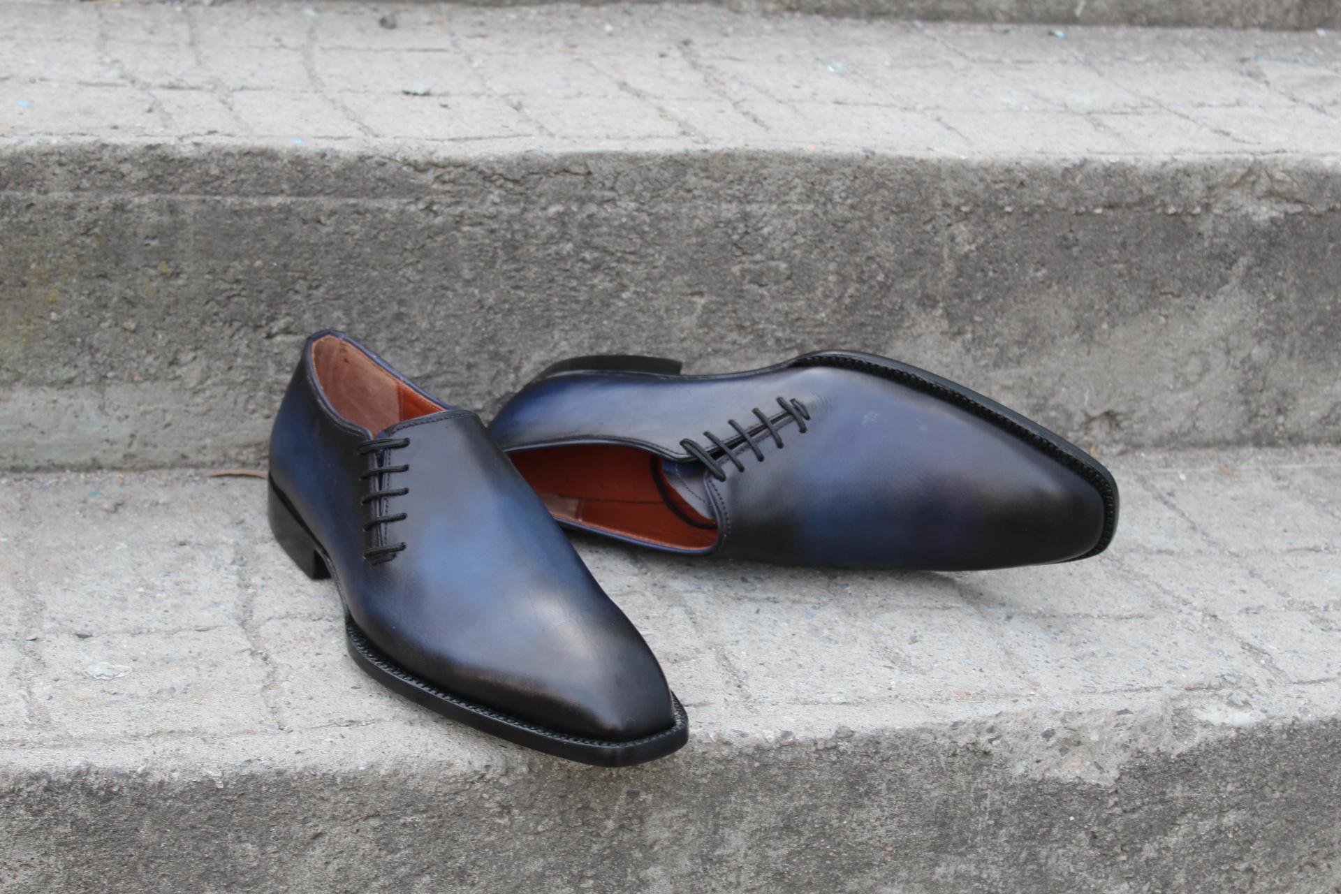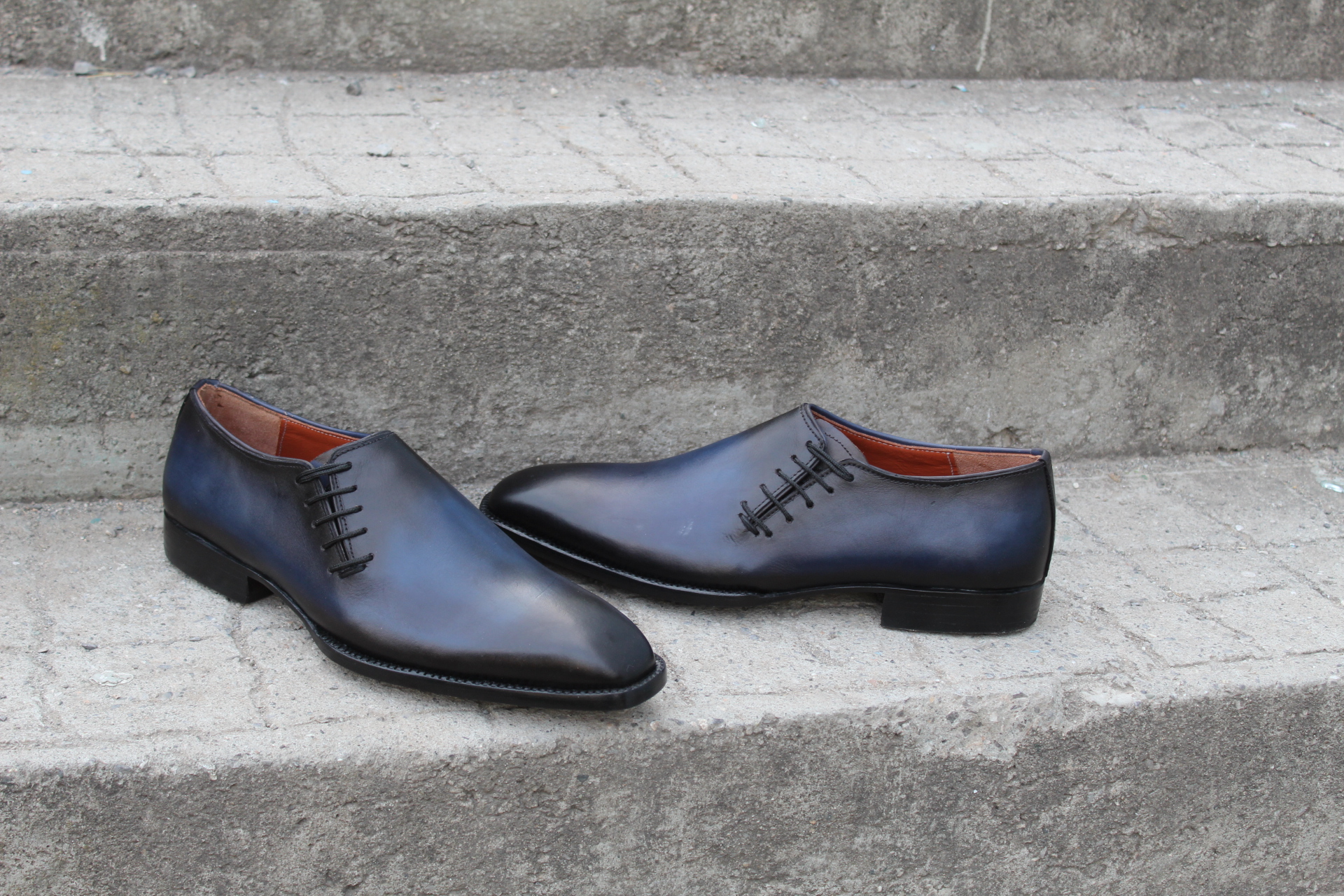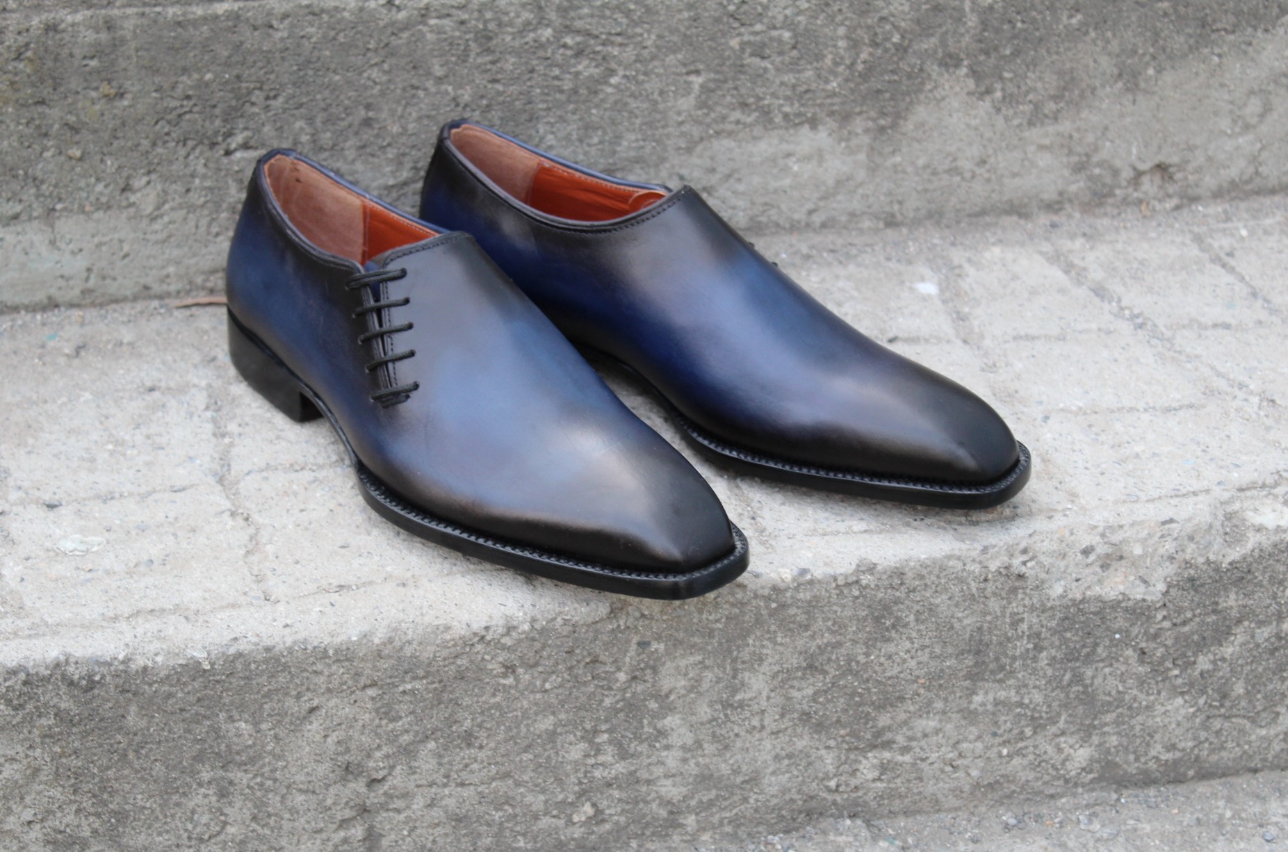 Crafted Leather Handmade Blue Black Shaded Classic Oxford Lace up Dress Shoes