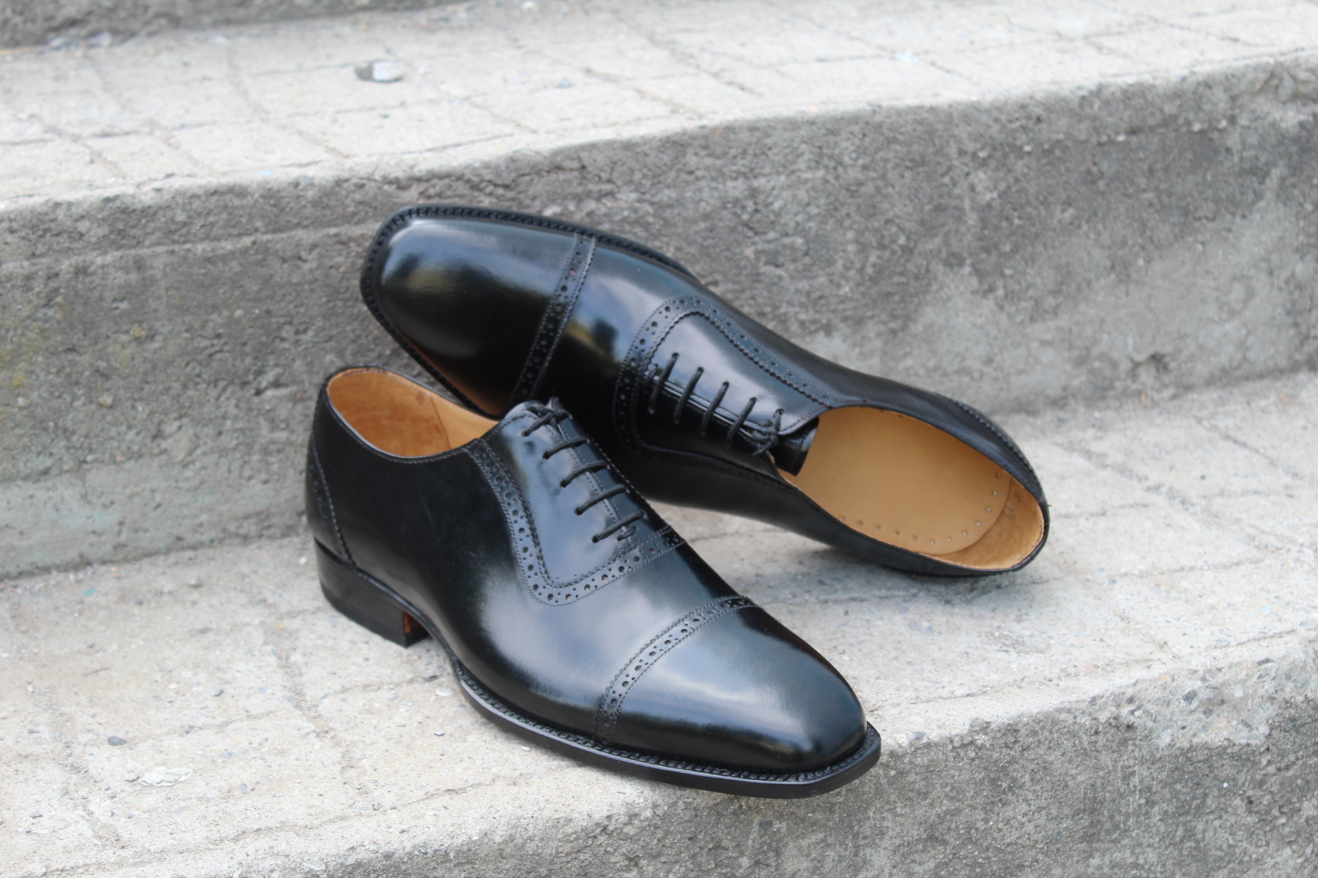 Inner: Soft Leather Sole: Leather Gender : Male Heel: Leather Color: Black Style: Oxford Shoes Lining Soft Calf Leather Lining Totally Hand stitched Manufacturing time 7-10 business days If you can’t find your Size/Colorjust send us message we will make for you.