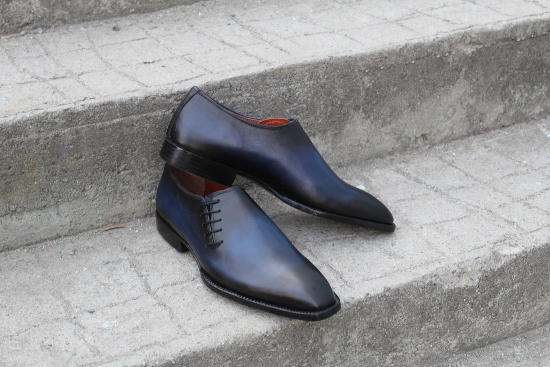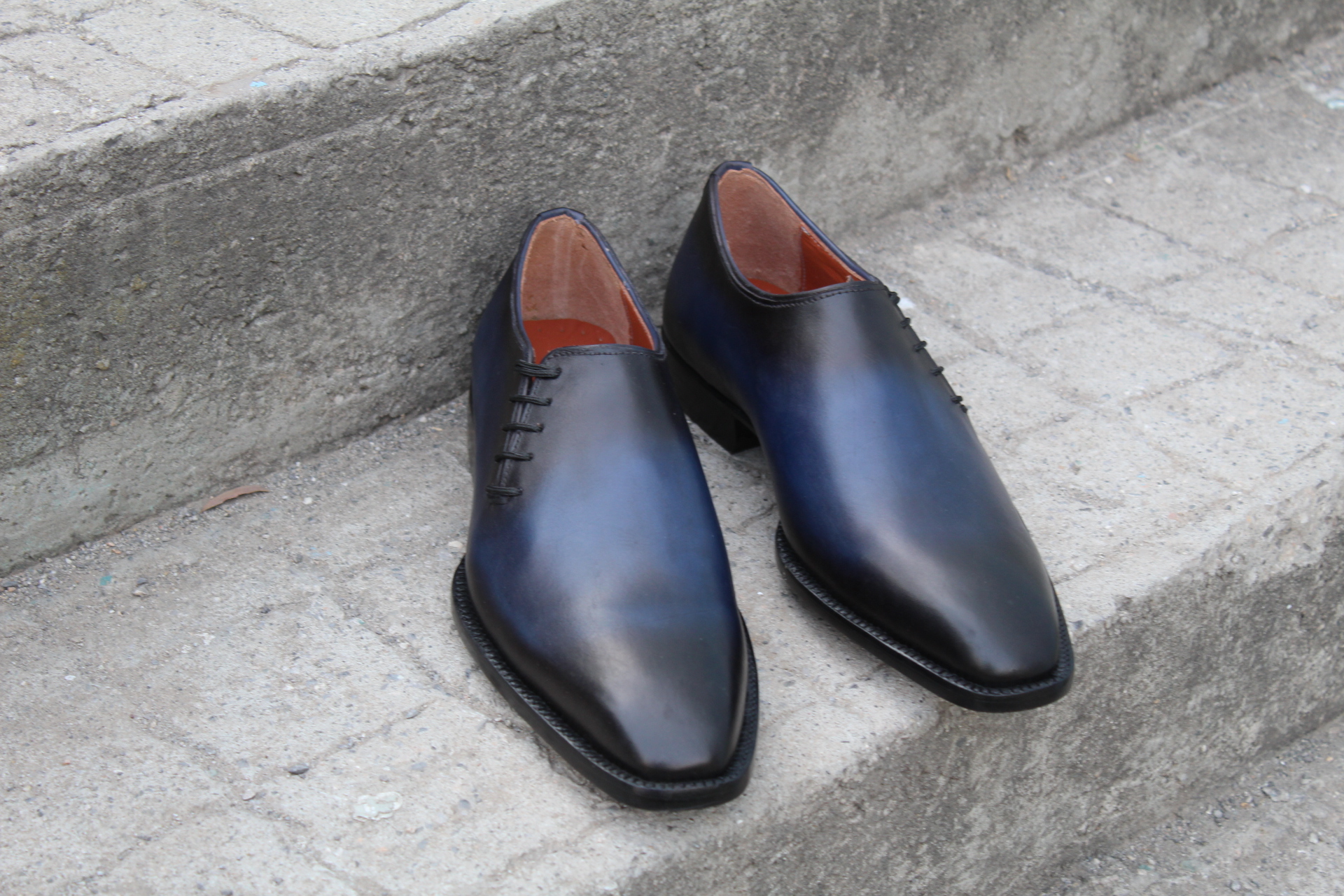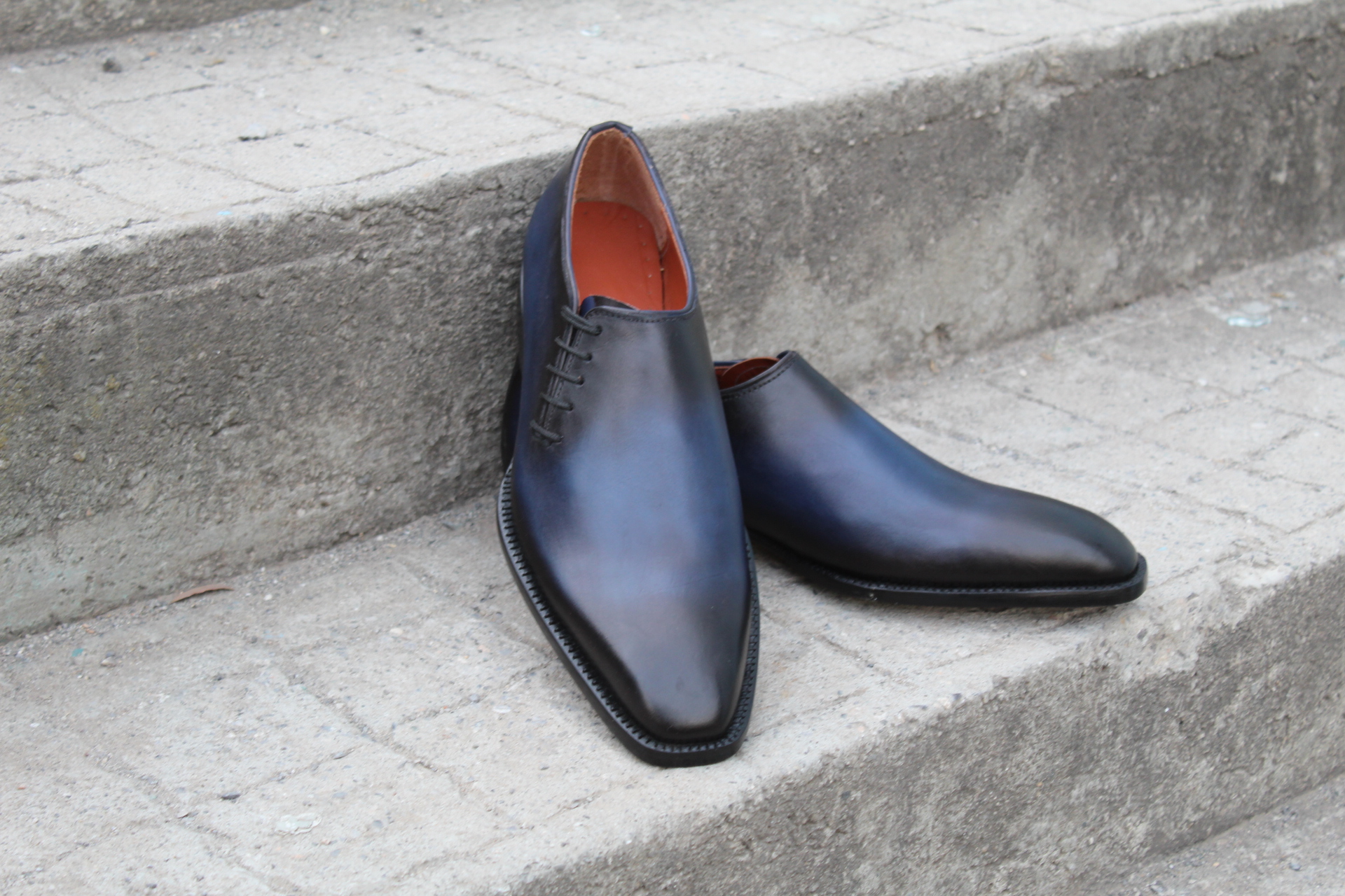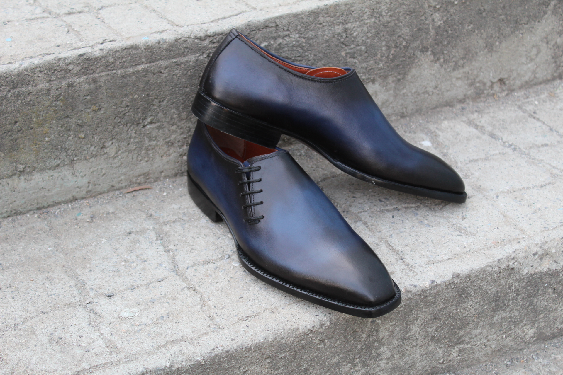 Inner: Soft Leather Sole: Leather Gender : Male Heel: Leather Color: Blue Black Style: Dress Shoes Lining Soft Calf Leather Lining Totally Hand stitched Manufacturing time 7-10 business days If you can’t find your Size/Colorjust send us message we will make for you.