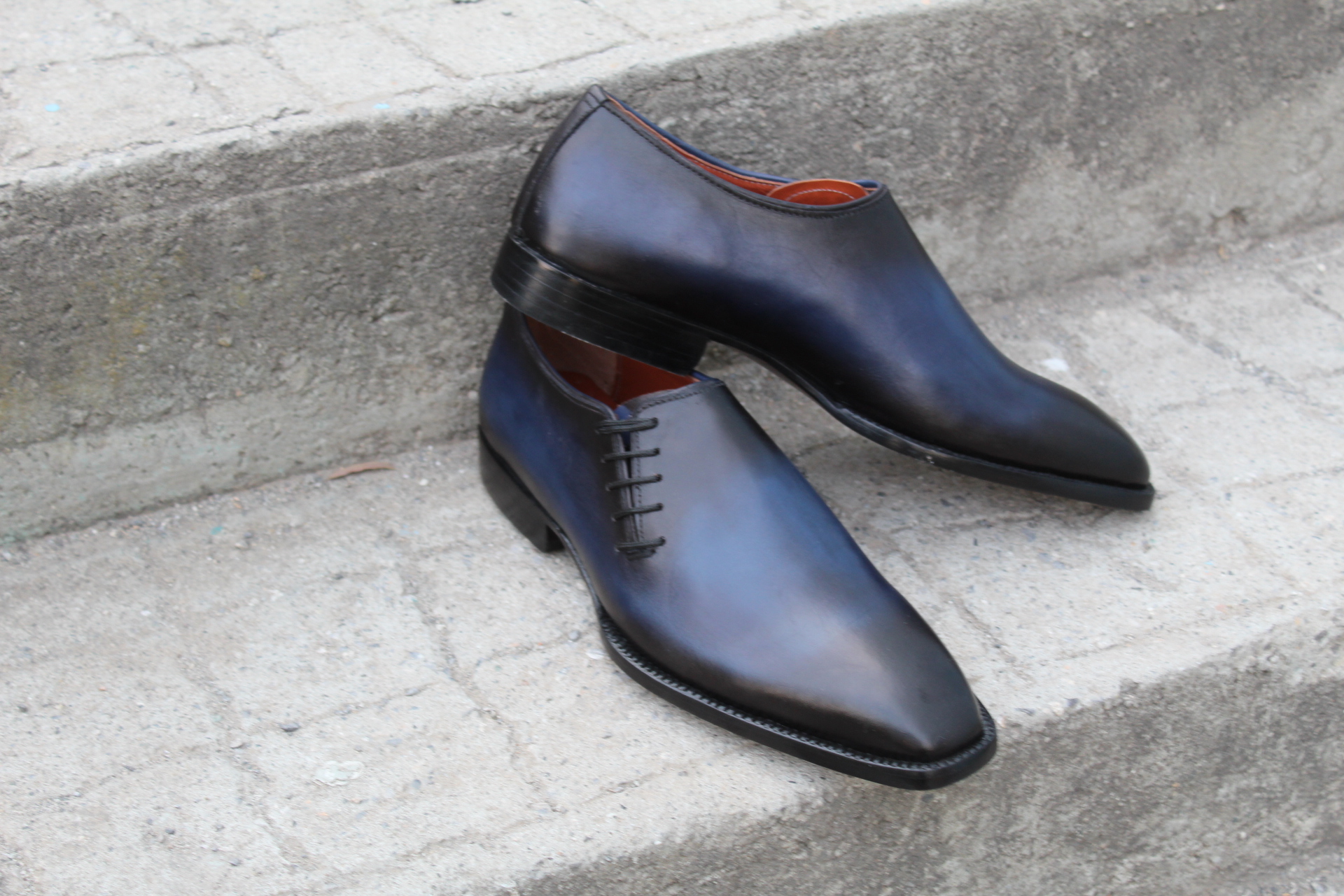 Crafted Leather Men Blue Black Shaded Classic Side Laces Oxford Dress Shoes