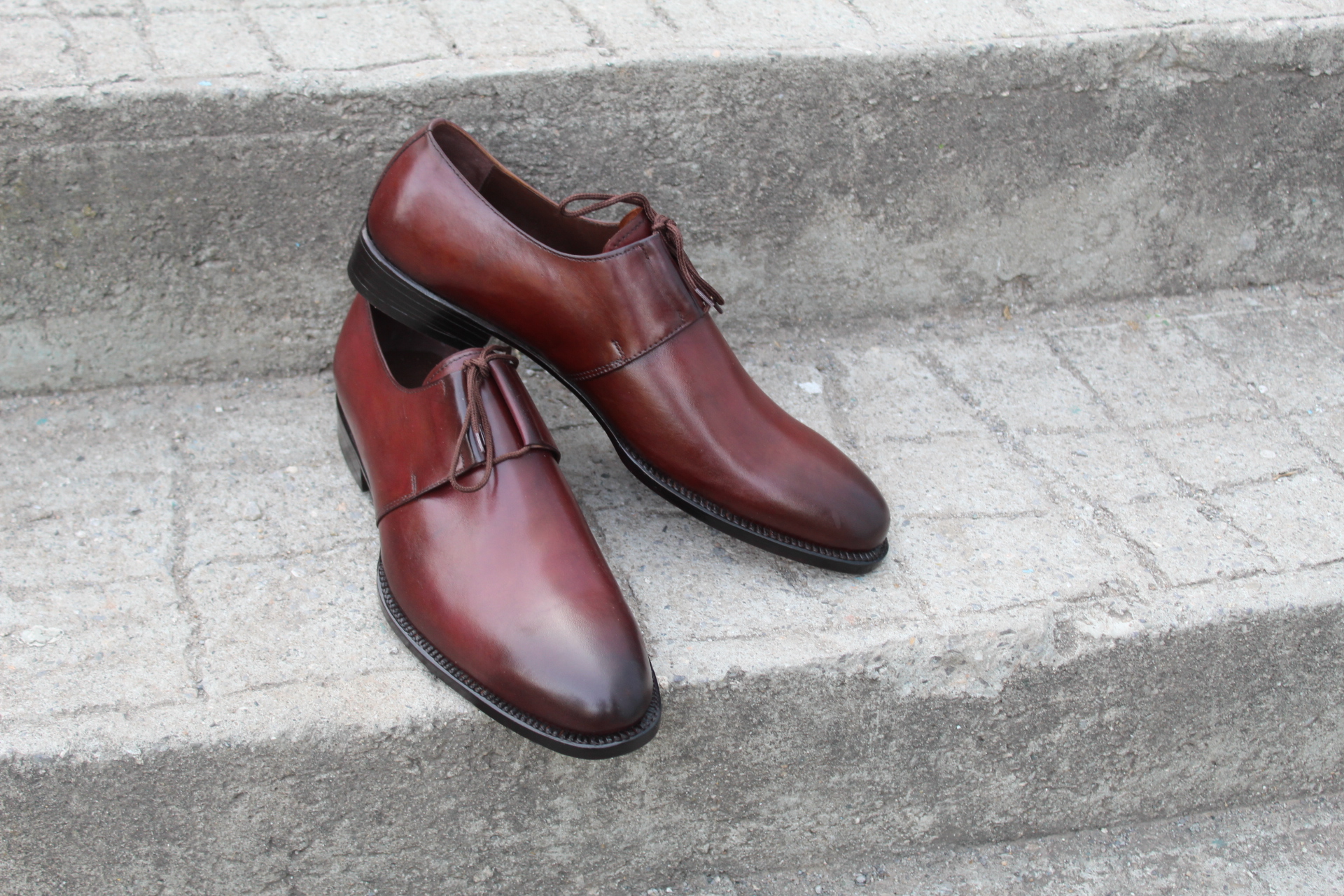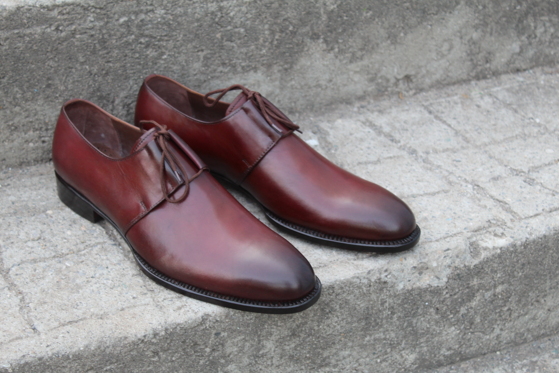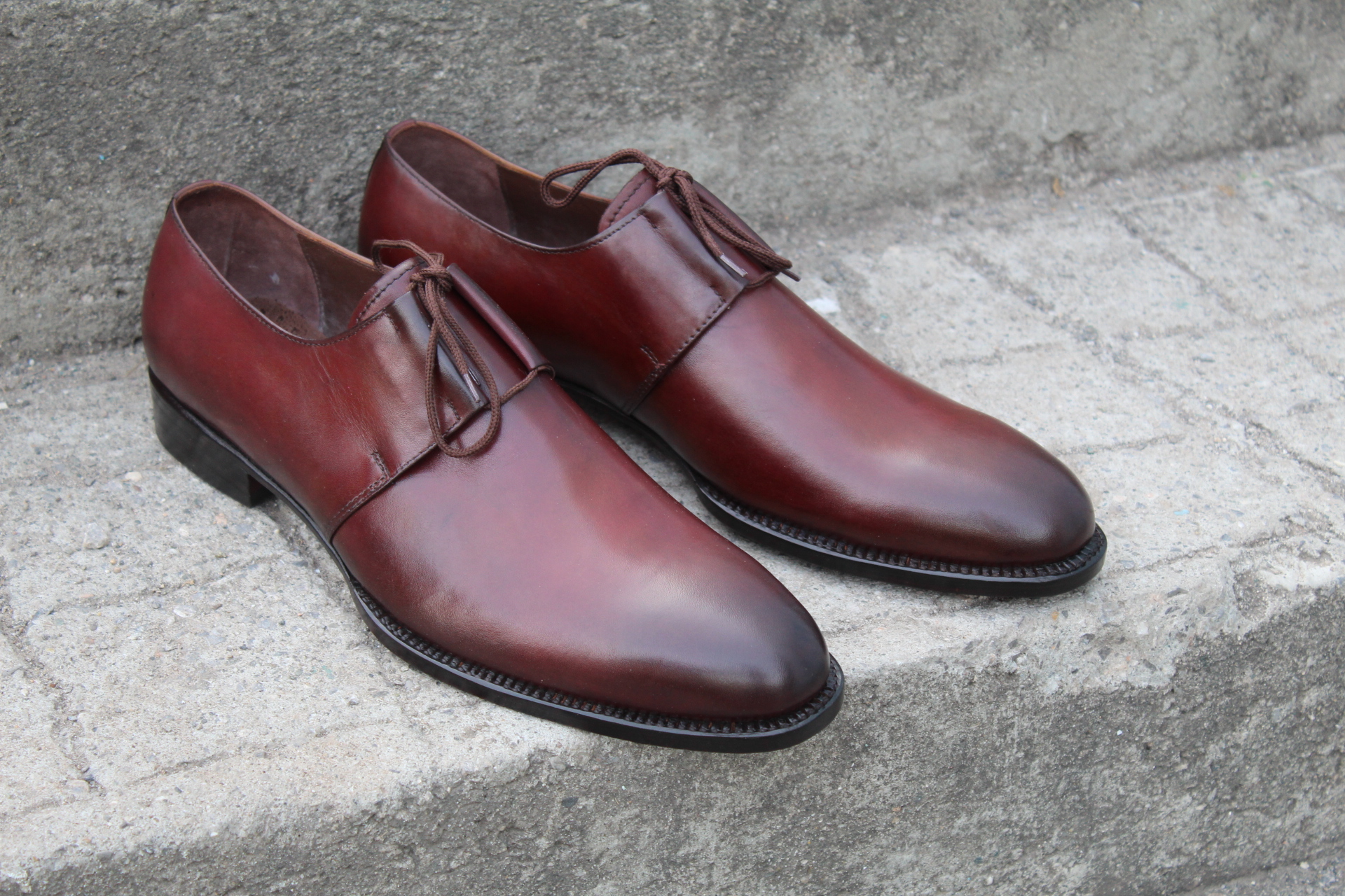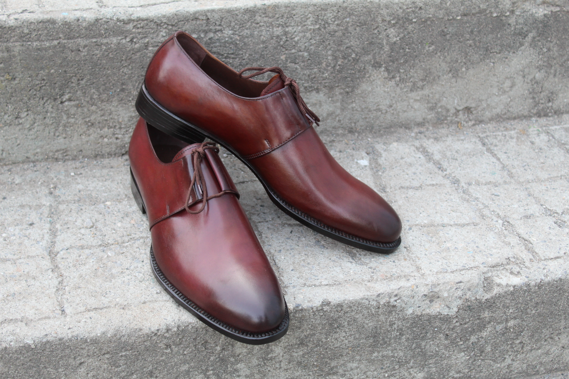 Crafted Leather Handmade Brown Patina Leather Men Oxford Lace up Dress Shoes